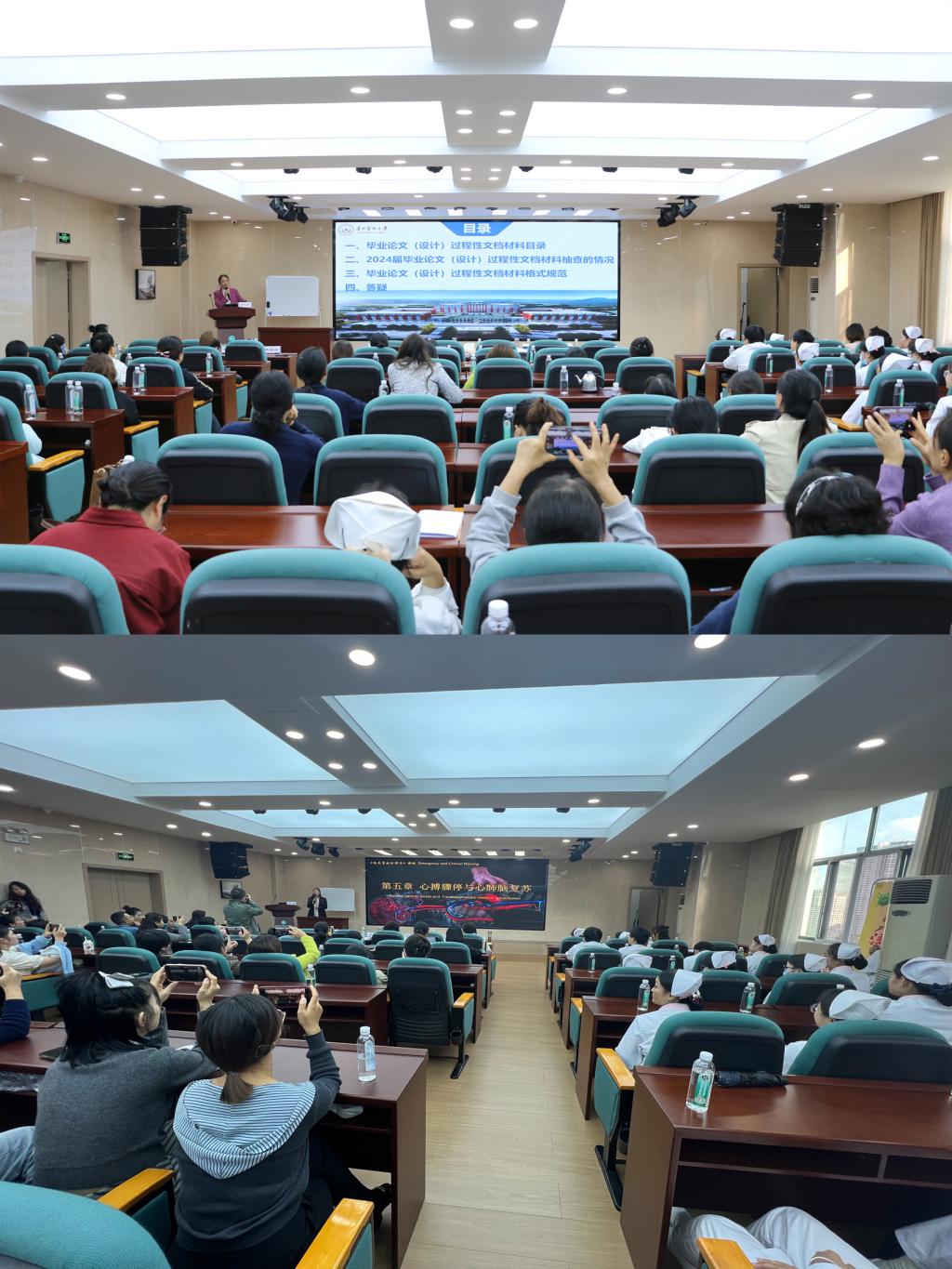 在本次巡回教学及教学督导中,巡回教学组对实习基地实践教学运行常态进行了督查指导,对理论教学进行课堂听课及示范性授课。并从如何上好一堂课教学设计、如何提高临床实习带教质量、如何提高实习生的心理健康、本科生毕业论文(设计)过程性文档管理、护理论文综述及个案报告的撰写等进行了培训,针对2024届校内抽检不合格论文进行展示讲解。同时召开实习师生座谈会,听取带教老师和实习学生的意见建议,了解学生实习及带教情况,并对学生就业进行了指导。