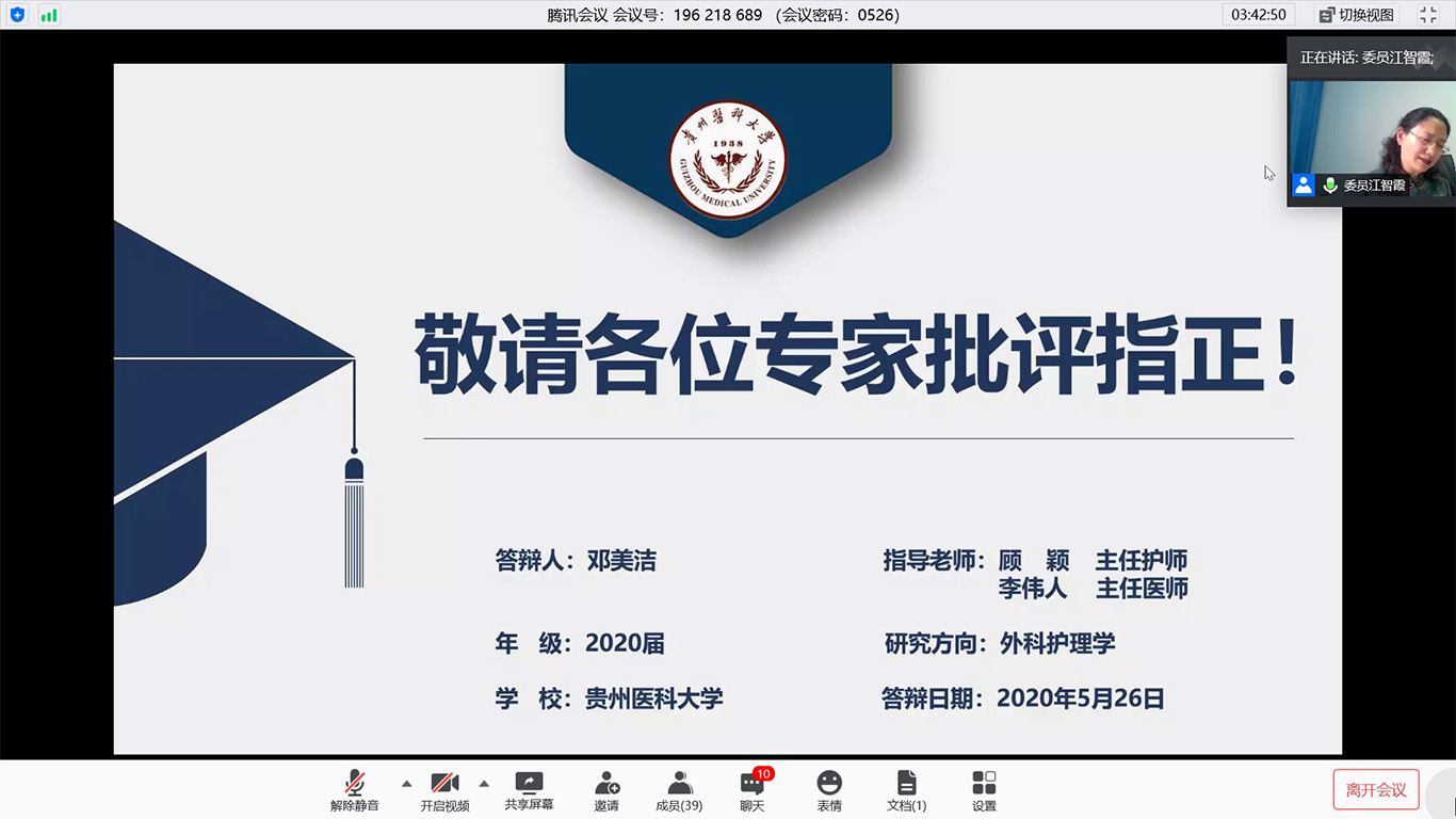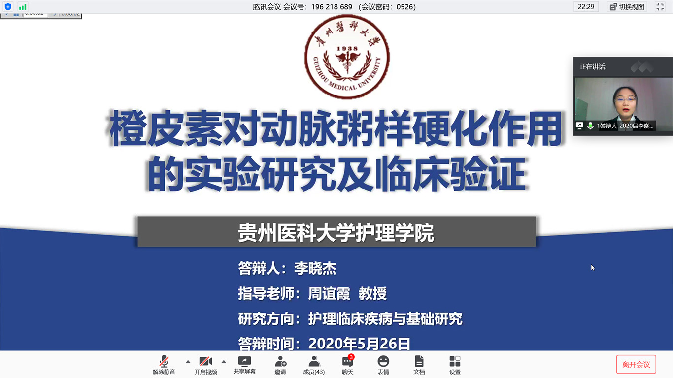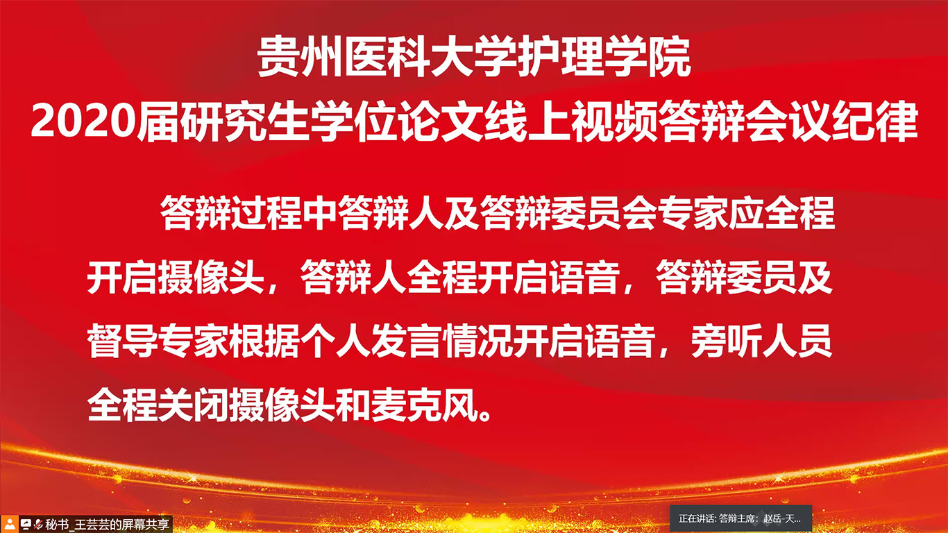 在疫情防控期间,为贯彻落实教育部《关于做好2020年上半年毕业研究生学位授予相关工作的通知》文件精神、贵州省以及学校疫情防控有关文件要求,做到管理不放松、质量不下降、毕业不延误,确保研究生培养顺利完成,allwincity万象城官方网站于2020年5月26日通过腾讯会议平台进行了2020届硕士研究生学位论文答辩。