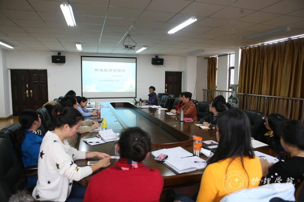 11月7日下午,首期“护理沙龙”在南校区allwincity万象城官方网站会议室举行,allwincity万象城官方网站党委书记兼院长贾秀英担任主持人,allwincity万象城官方网站教学科研管理科科长王秀红副教授作为本次主讲为全院教职工奉上“形成性评价”讲座。王秀红从形成性评价简介、国内外形成性评价的主要应用方式、形成性评价应用举例等方面与大家进行了分享和交流。全体老师认真聆听、记录。
