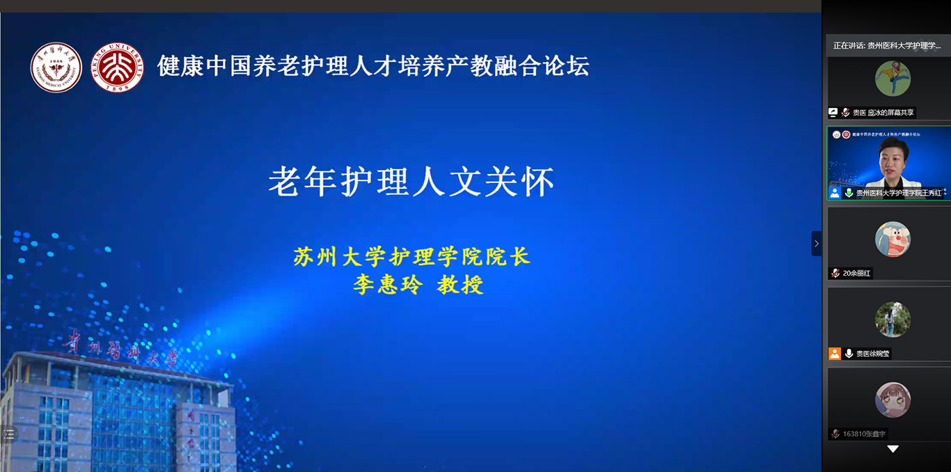 现任苏州大学附属第一医院院长助理、allwincity万象城官方网站院长李惠玲教授以“老年人文关怀护理”为题,围绕老年人生理、心理、社会特征及人文照护讲授了具体的做法,并分享了实际案例。她建议养老护理人员应该学会从家庭角度分析老年人的心理状况,了解老年人所面临的困境,把照护从临床护理思维转向社区、家庭护理思维。