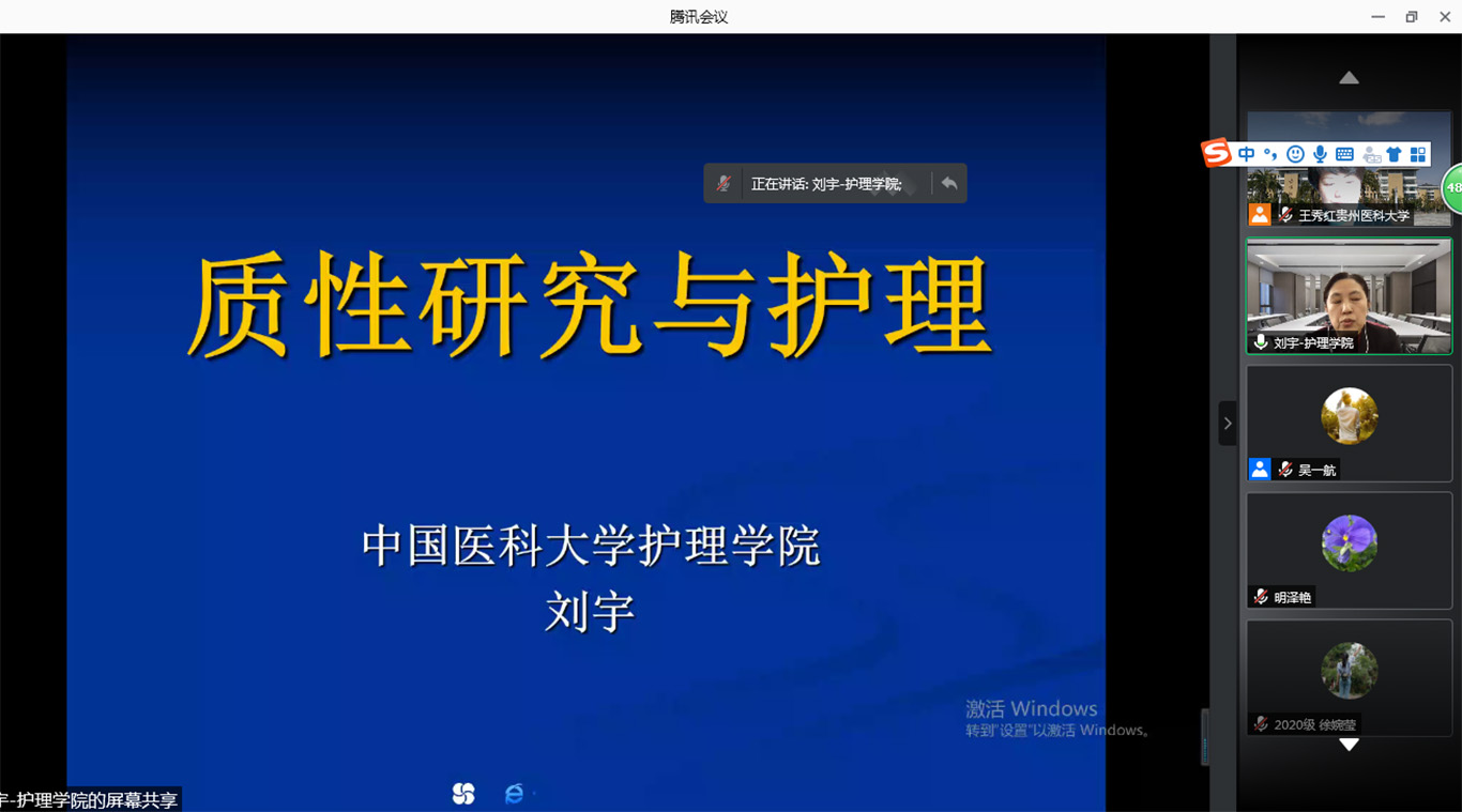 为进一步提升师生护理科研水平,帮助护理师生更好掌握护理研究方法、提升研究生专业课程教学和学习能力,1月20日,中国医科大学刘宇教授受邀为我校护理教师及研究生开展了题为“质性研究与护理”的专题授课。会议通过腾讯会议平台进行,allwincity万象城官方网站及附院专业教师、全体研究生60余人参加学习,allwincity万象城官方网站副院长王秀红主持。