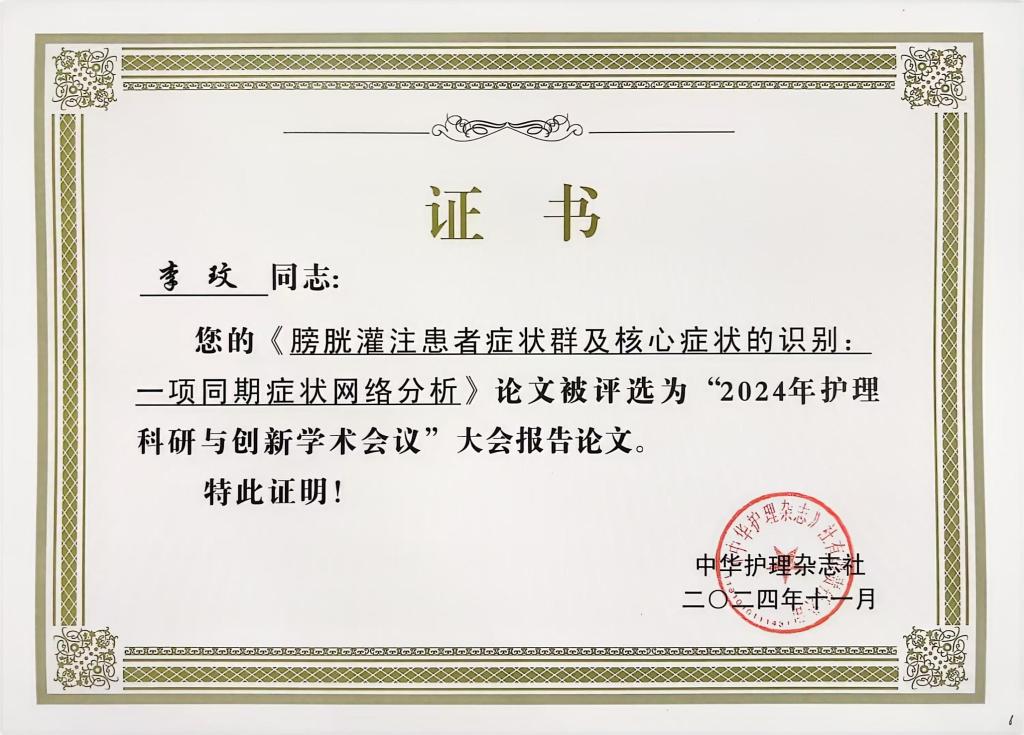此外,万象城官网2022级护理研究生李玟以“膀胱灌注患者症状群及核心症状的识别:一项同期症状网络分析”为题进行了大会交流汇报,得到与会者充分肯定,对自身的学术成长历程和科研能力也有一定的促进作用。