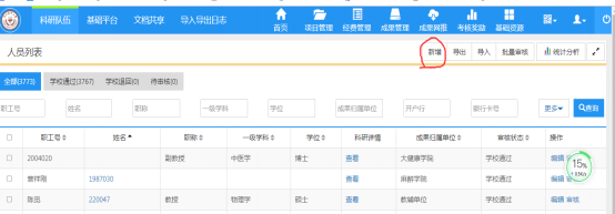 第四步:输入需要添加的老师的姓名,工号(也就是用户名),单位,点下面保存就添加成功了(注:如果是附院编制没有工号的老师,就在工号处填他身份证后八位就可以)