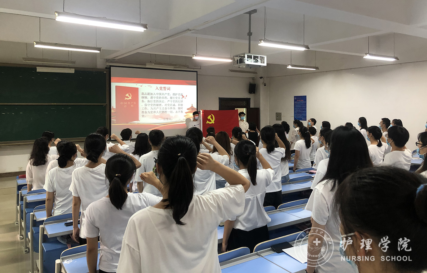 活动第二项,在学院党委书记杨英的带领下,在庄严的党旗前,全体师生党员集体重温了入党誓词。“我志愿加入中国共产党,拥护党的纲领......”随着响亮的入党誓词声,大家仿佛回到了当初那个庄严而激动的时刻,对每一位共产党员来说,从宣誓的那一天起,生命便被赋予了新的意义。重温入党誓词,再一次提醒了党员同志们不忘光荣使命。