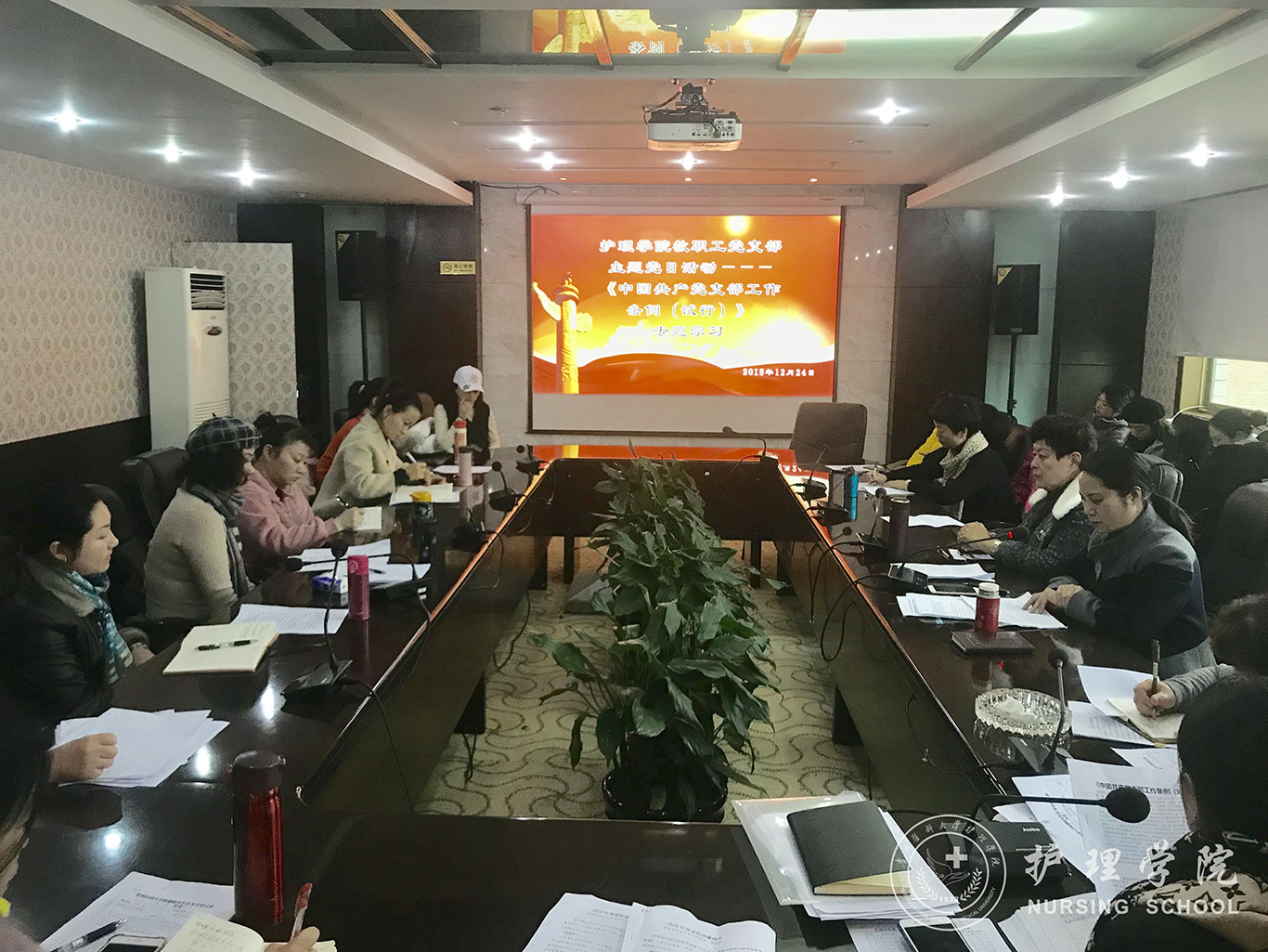 根据校党委的有关要求,12月24日中午,allwincity万象城官方网站教工党支部在北校区行政楼六楼会议室开展了主题党日活动,专题学习了《中国共产党支部工作条例(试行)》(以下简称《条例》),以及全国和全省教育大会精神。万象城官网领导班子、全体教职工党员参加了会议,会议由党支部书记张黎主持。