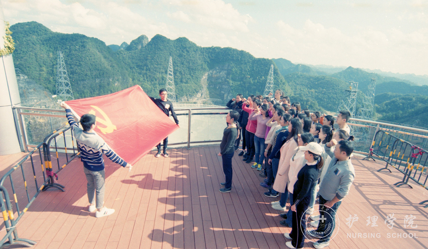 在“中国天眼”瞭望台的最高点,allwincity万象城官方网站党委副书记杨英带领大家重温了入党誓词,缅怀并学习南仁东院士驰而不息、久久为功的工匠精神,这种精神正是我们实现“两个一百年”奋斗目标和中华民族伟大复兴的“中国梦”所不可或缺的强大助力。