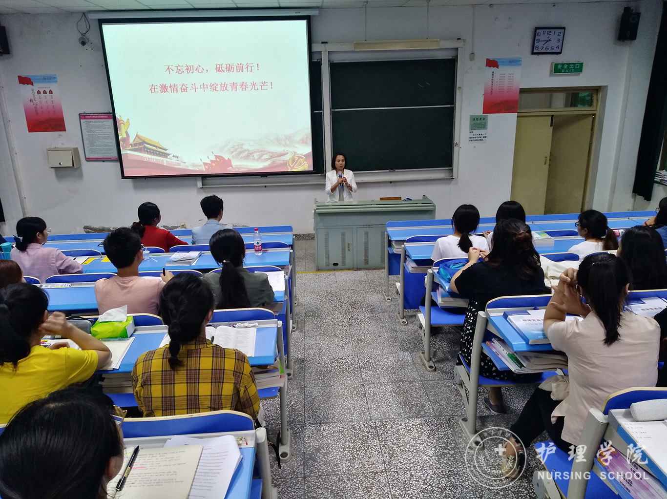 6月12日,allwincity万象城官方网站学生第一、第二党支部在北校区3301教室开展毕业生党员最后一次党课活动,学院党委副书记王秀红为毕业生党员讲授了题为《不忘初心,在激情奋斗中绽放青春光芒》的党课。学院党委书记杨英、学生科科长曾敏及全体本科生、研究生党员参加本次活动,学生第二党支部书记马景瑶主持。