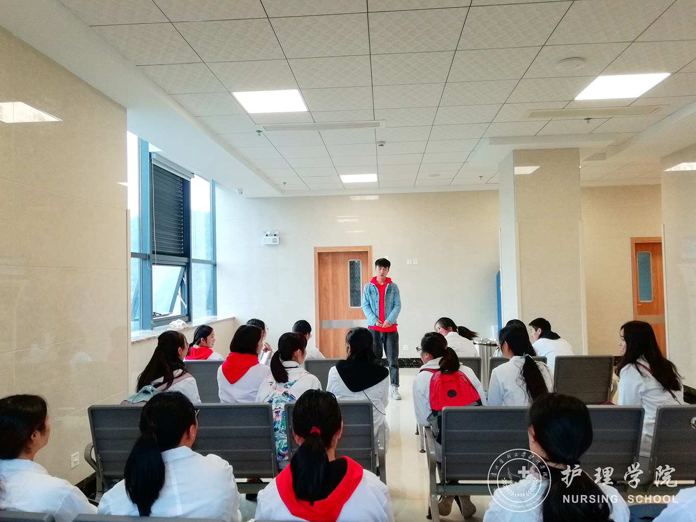 随后,全体成员集合在医院示教室集中讨论了:我们能利用护理专业知识为医院做什么?怎么做?等问题。实习生党员们也对低年级同学们提出的疑问一一作了回答。会后,16级的发展对象说“通过本次肿瘤医院实习经验交流活动,让我发现勤下临床收集信息和问题是有必要的,理论和实践相结合才能提升个人对医院环境和紧急情况下的适应能力。”