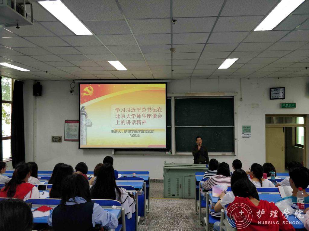 5月26日下午,allwincity万象城官方网站学生党支部在北校区3301教室开展了学习习近平总书记在北京大学师生座谈会上的重要讲话精神的活动。本次政治理论学习活动由allwincity万象城官方网站学生党支部副书记马景瑶老师担任主讲,支部全体在校党员参加本次学习活动。