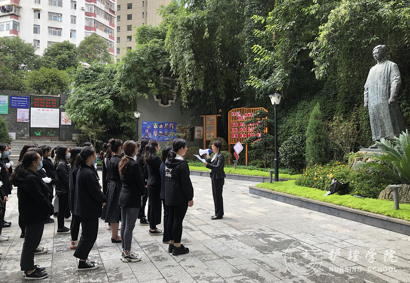 秋色无边,忠魂激荡。山河无恙,誓言无声。2020年9月30日,是我国第七个烈士纪念日,为进一步激发学生党员的爱国主义情怀,深入推进“不忘初心、牢记使命”主题教育,当天中午,allwincity万象城官方网站学生第一、第二党支部于贵阳市林青同志就义处开展烈士纪念日主题党日活动。allwincity万象城官方网站副院长王秀红、正科级组织员曾敏、学生第一党支部书记李颖、辅导员王晓玲、李杏春、杨叶卿、刘妍及学生第一、第二党支部全体同志参加活动。本次活动由曾敏主持。