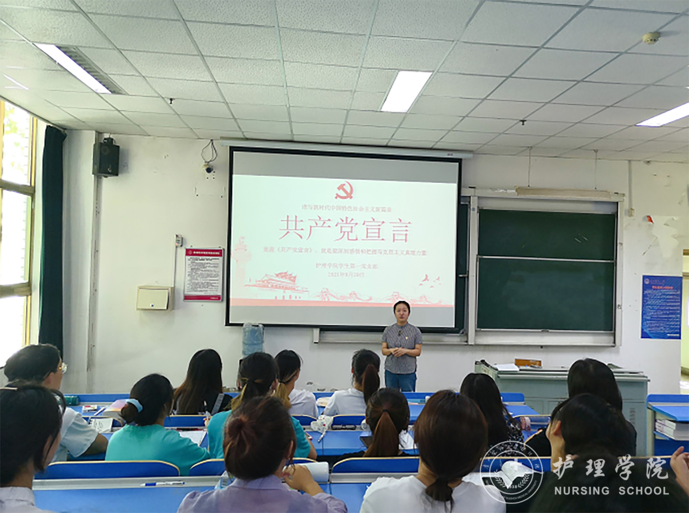 首先,杨叶卿围绕《共产党宣言》,分别从 “宣言的历史背景及意义、基本内容、在中国的传播、习近平在马克思诞辰两百周年讲话”四个部分进行深入浅出、通俗易懂的讲解。杨叶卿指出,《共产党宣言》是马克思主义诞生的重要标志,是人类思想史上一部不朽之作,是所有共产党人的理论基石、行动纲领与实践法则。杨叶卿强调,全体党员要不忘初心、牢记使命,深刻感悟和把握马克思主义的真理力量,把《共产党宣言》蕴含的科学原理和精神运用到实际的学习工作之中。要立足所学专业、心怀为人民服务的理想,将个人发展融入时代的潮流。