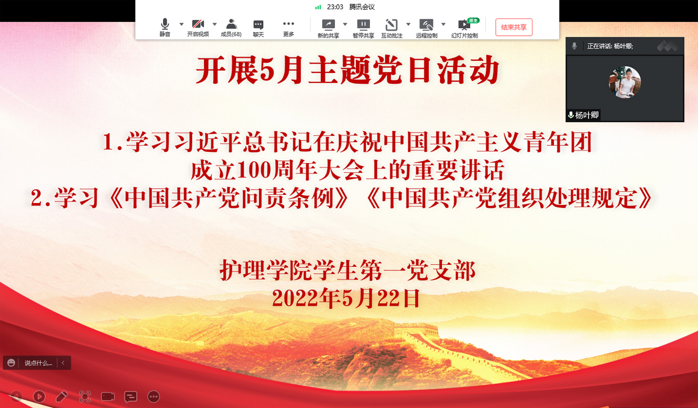 会上,各学生党支部书记带领全体党员认真学习习近平总书记在庆祝中国共产主义青年团成立100周年大会上的重要讲话精神及习近平总书记关于安全生产重要论述和指示批示精神,并深入解读《中国共产党问责条例》《中国共产党组织处理规定》《中华人民共和国民法典》的基本内容和重要地位作用。同时强调,我们要牢记殷殷嘱托,不断增强党支部的政治性、先进性、群众性,把个人奋斗融入民族复兴的时代洪流中,与时代同步伐、与祖国共命运、与人民齐奋斗,争当伟大理想的追梦人。