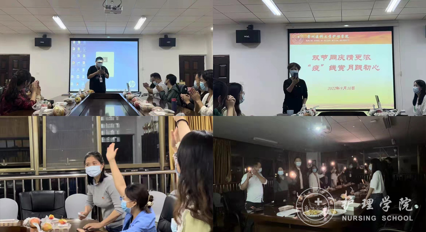 活动开始之前,allwincity万象城官方网站党委书记杨英精心为大家准备了中秋月饼,氛围感满满。此次“双节”活动内容丰富、形式多样,谈感想、展才艺、猜字谜、畅情怀…活动现场热闹而温馨。最后,老师们齐唱一首《明天会更好》寄语明天,寄语贵医。老师们纷纷表示,佳节送祝福,礼轻情意重,在攻坚克难的关键时期,能够有此次机会跟在座的同事畅谈心扉,实属不易,愿春暖花开,愿你我安好。