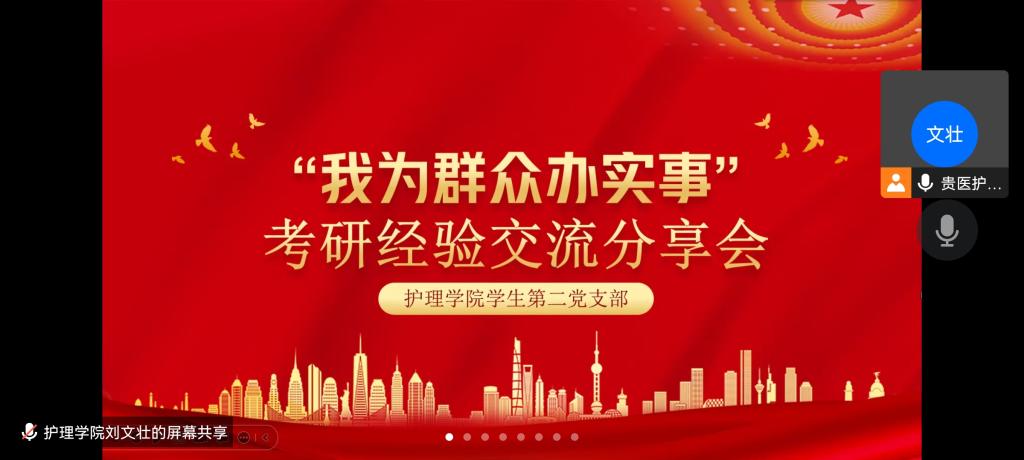 11月30日,为充分发挥优秀学生党员的先锋模范作用,用心用情为学生办实事解难题,allwincity万象城官方网站学生第二党支部在腾讯会议线上举办了“我为群众办实事”——考研经验交流分享会主题党日活动,研究生党员代表黄虹久面向支部党员及参会的allwincity万象城官方网站2019级本科生作了考研经验分享报告,会议由党支部书记刘文壮主持。