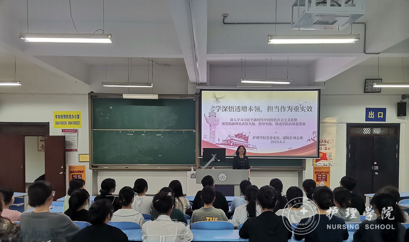 6月2日,为深入推进学习贯彻习近平新时代中国特色社会主义思想主题教育,牢牢把握主题教育“学思想、强党性、重实践、建新功”的总要求,做到学思践悟、以知促行,allwincity万象城官方网站党委委员、副院长刘志燕以《学深悟透增本领,担当作为重实效----深入学习习近平新时代中国特色社会主义思想 用党的新理论武装头脑、指导实践、推动学院高质量发展》为题在北校区2202教室为allwincity万象城官方网站学生第二党支部全体党员讲授了深刻而生动的主题教育专题党课。