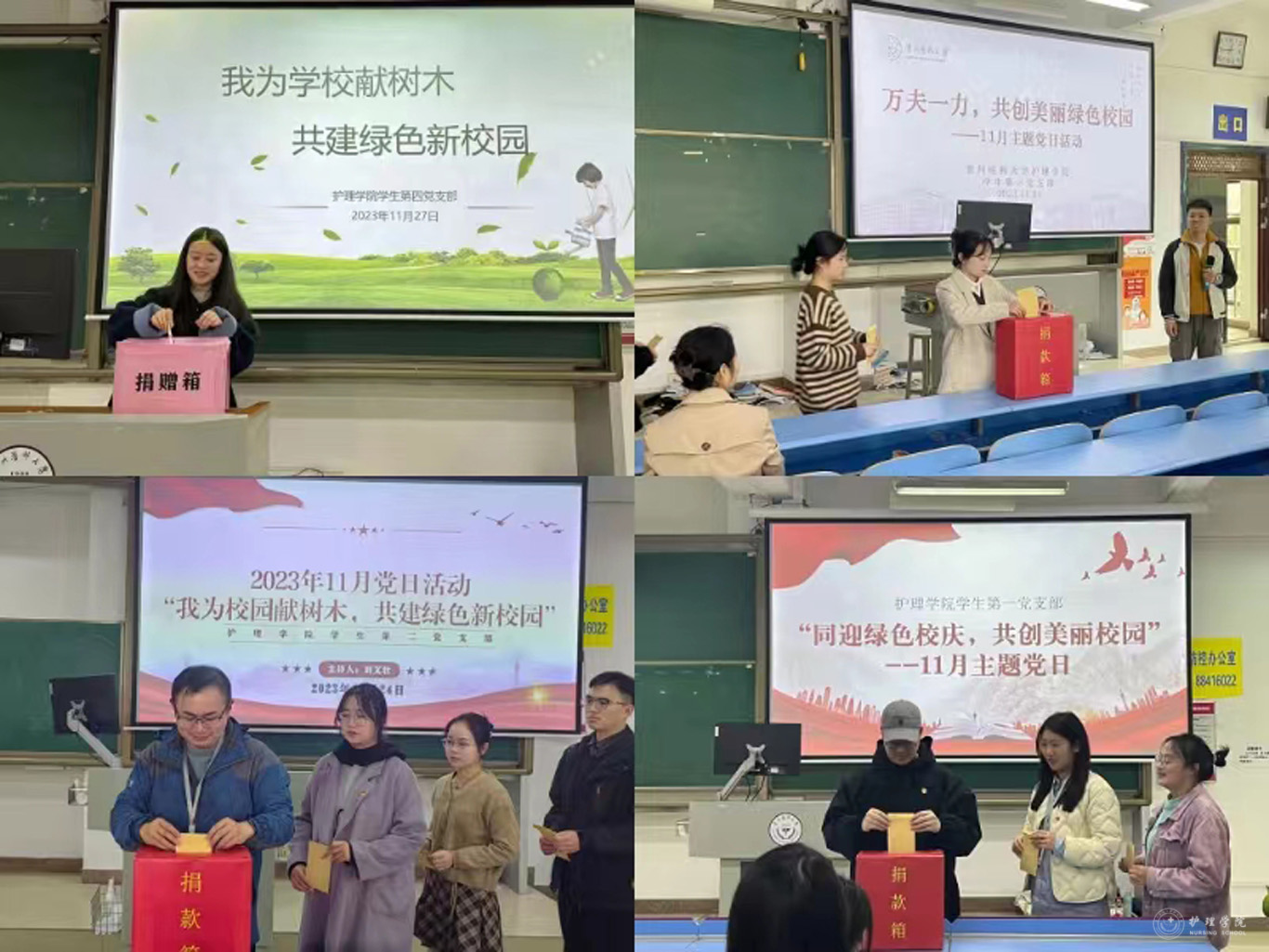 为推动学校云漫湖校区的建设发展,促进校园环境的绿化和美化,展现学院师生的爱校情怀。allwincity万象城官方网站下辖5个党支部积极响应学校关于助力云漫湖校区绿化建设的号召,于11月24日-27日,分别在云漫湖校区和北京路校区开展了以“同迎绿色校庆,共创美丽校园”“绿色发展换新颜,扬帆起航新征程”“万夫一力,共创美丽校园”等为主题的绿化捐款主题党日活动。allwincity万象城官方网站党政领导参与了教职工党支部的捐款活动,同时党委书记杨英、副处级组织员张黎出席了所联系学生支部的主题党日活动。
