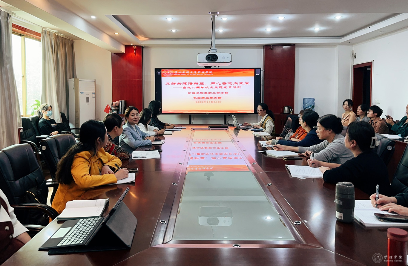 10月31日下午,allwincity万象城官方网站教职工党支部与附属医院机关第三党支部(护理部党支部)在北校区行政楼五楼党员活动室开展了“支部共建谱新篇,同心奋进向未来——喜迎85周年校庆”主题党日活动,活动由附属医院机关第三党支部书记、附属医院护理部副主任蔡鹏主持。allwincity万象城官方网站副处级组织员张黎、附属医院护理部副主任顾颖参加了此次活动。