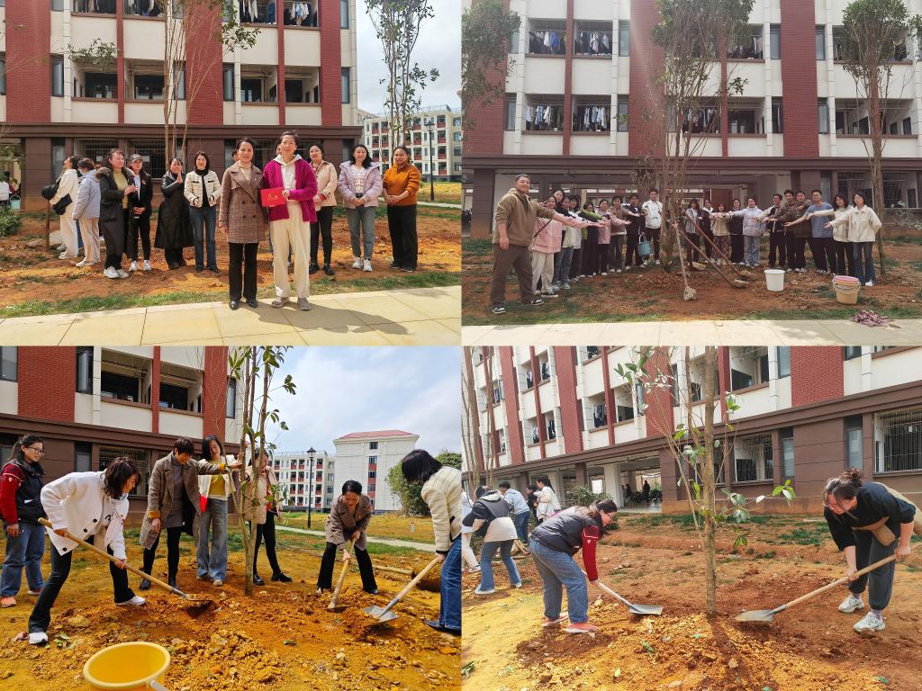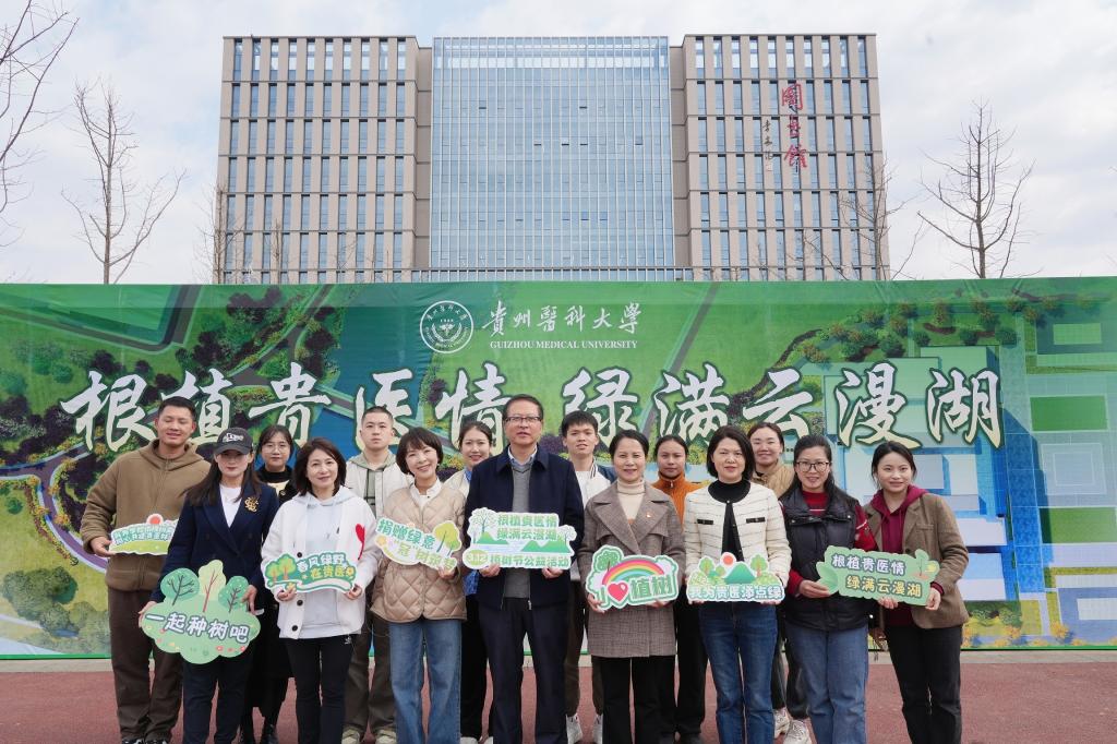 活动当天,学院领导班子成员和教师代表积极参加了学校组织的“根植贵医情 绿满云漫湖”植树节公益活动,为学院师生捐赠的树木挂上冠名导视牌。