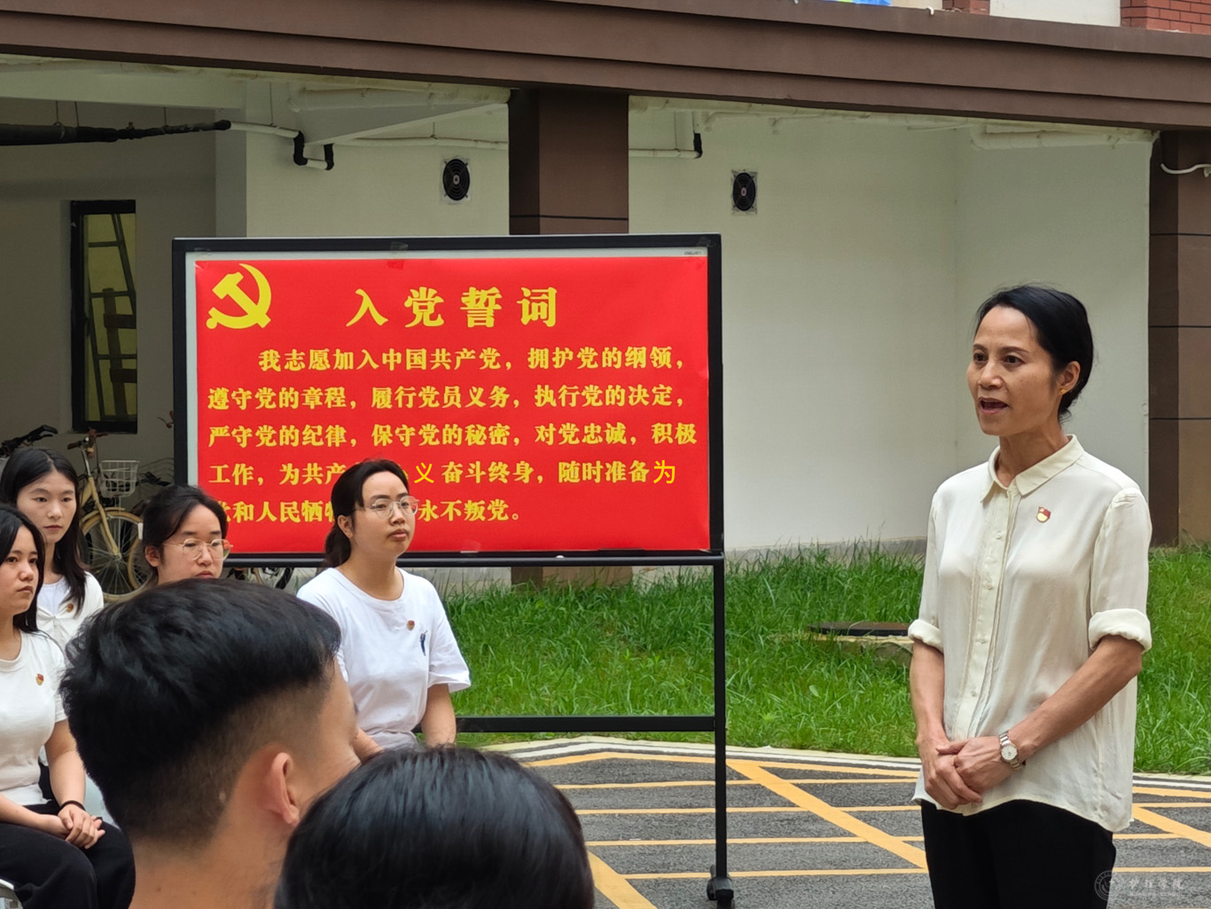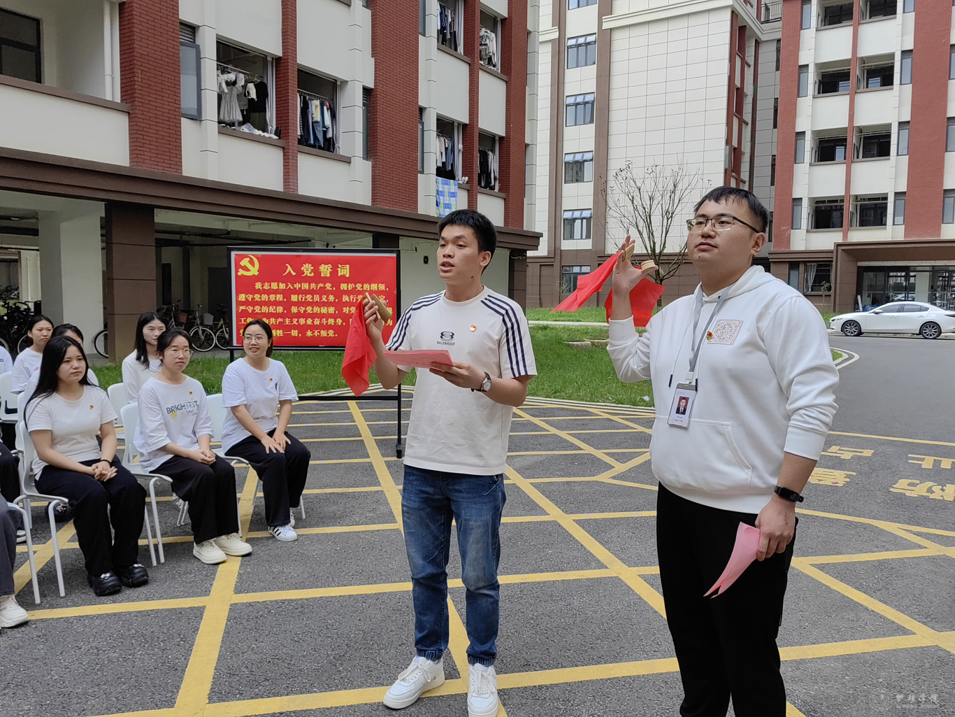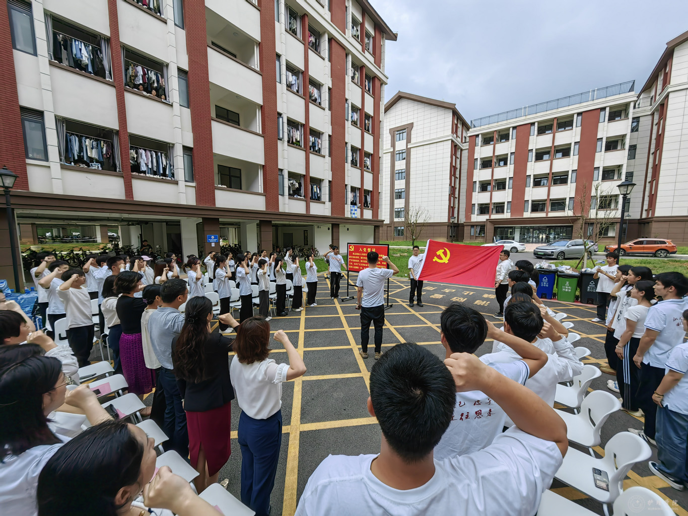 活动中,学院党委副书记兼纪委书记何为带领新发展党员面向党旗庄严宣誓,以铿锵有力的宣誓声表达了对党的无限忠诚和为共产主义事业奋斗终身的坚定决心。随后,党委学生工作部(学生处、武装部)嘉宾及学院教师党员代表为新发展党员佩戴了党员徽章,新发展教师党员代表袁明、学生党员代表朱月成分别作了表态发言。学院党委书记杨英对新发展党员表示了衷心的祝贺,她指出,全体新发展党员要坚定理想信念,在攻坚克难中磨砺专业本领,在深学细悟中增长知识才干,做一名在学习和工作中充分发挥先锋模范作用的合格党员,在实现第二个百年奋斗目标的历史伟业中贡献自己的智慧和力量。