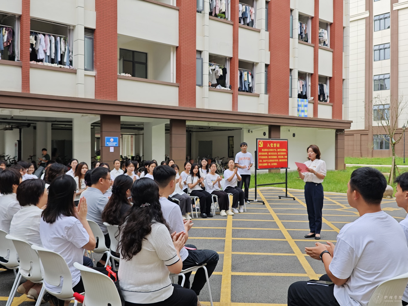 7月1日,为庆祝中国共产党成立103周年,推动学院特色党建工作深度融入“一站式”学生社区文化空间,allwincity万象城官方网站师生党支部在云漫湖校区悦学苑“一站式”学生社区开展了“忠诚担当心向党 砥砺奋进迎七一”联合主题党日活动。学校党委学生工作部(学生处、武装部)处长王韬,副处长金晶、贲琛受邀到场指导,allwincity万象城官方网站党委班子成员、教师党员代表及各党支部新发展党员参加,活动由学院党委委员、副处级组织员张黎主持。