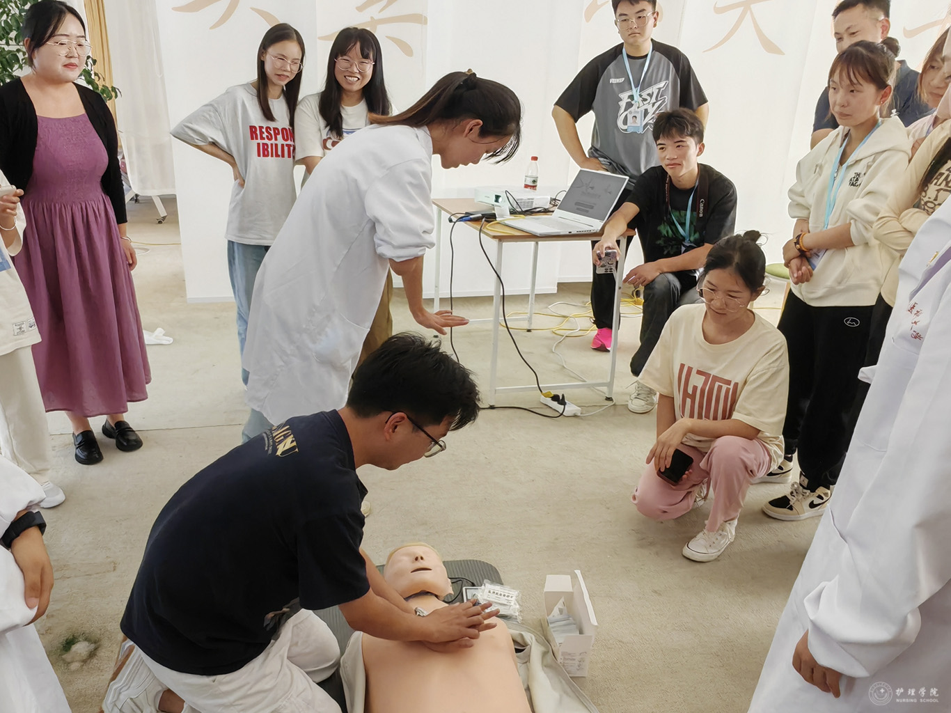 活动开始前,刘妍简要地介绍此次活动的目的并表达了对两院今后开展共建合作的期许。培训人员以理论实践相结合的方式,为参训人员讲解并演示了心肺复苏术(CPR)、包扎止血术和气道异物清除术,随后指导参训人员进行了实操练习。