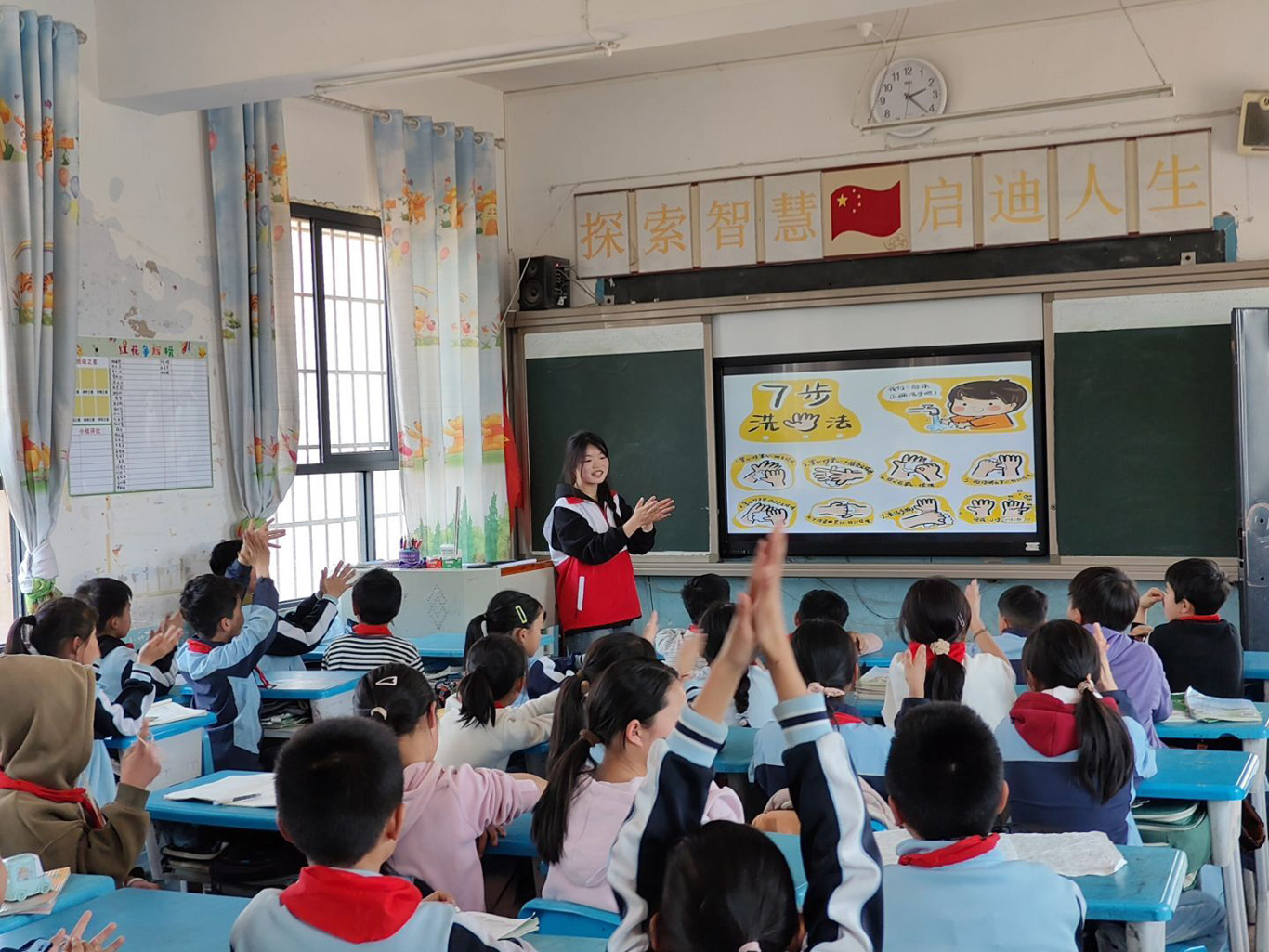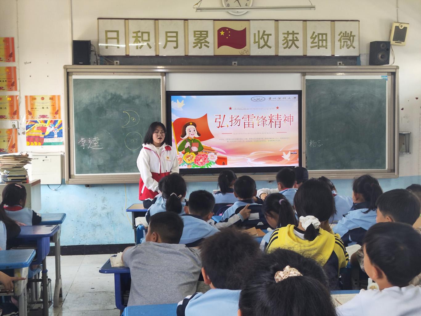 为弘扬雷锋精神,践行“奉献、友爱、互助、进步”的志愿服务理念,同时加强小学生对春季流行病的预防意识,allwincity万象城官方网站学生第一党支部联合青年志愿者协会allwincity万象城官方网站分会于2025年3月25日在马场镇中心小学举办了“我为群众办实事”主题党日暨“学雷锋”志愿活动。此次活动在马场镇中心小学五年级四个班级中开展,由李学领、简俊湫、王国应、顾欣雨四位同学主讲,学生第一党支部书记梁子豪主持。