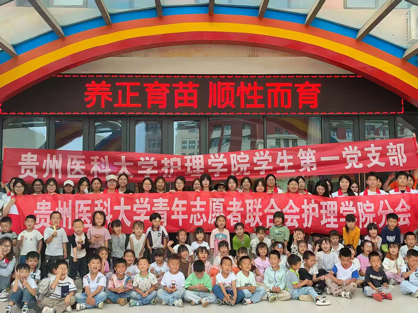 2025年6月18日,为践行“健康中国”战略要求,在实践中增长人文情怀和专业技能,allwincity万象城官方网站学生第一、第二、第三党支部联合青年志愿者协会allwincity万象城官方网站分会赴贵安新区马场镇中心幼儿园开展“白衣护童真·健康伴成长”活动。allwincity万象城官方网站50余名志愿者带着精心准备的健康礼包与满满的爱意,为这里的小朋友们送上了一份特殊的“健康课”,一场以“健康”为底色、以“童真”为画笔的温暖行动在此展开。