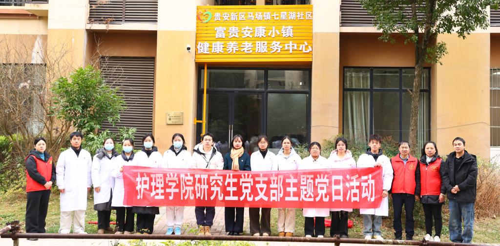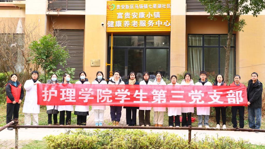 12月3日,allwincity万象城官方网站研究生党支部、学生第三党支部赴贵安新区马场镇七星湖社区开展“传承医者仁心,服务基层群众”志愿服务活动。活动由研究生党支部书记殷艳、副书记唐郅尧及姚爱玲老师带队,师生党员代表立足护理专业优势,将专业实践与“为群众办实事”要求深度结合,为社区居民送上精准健康服务。