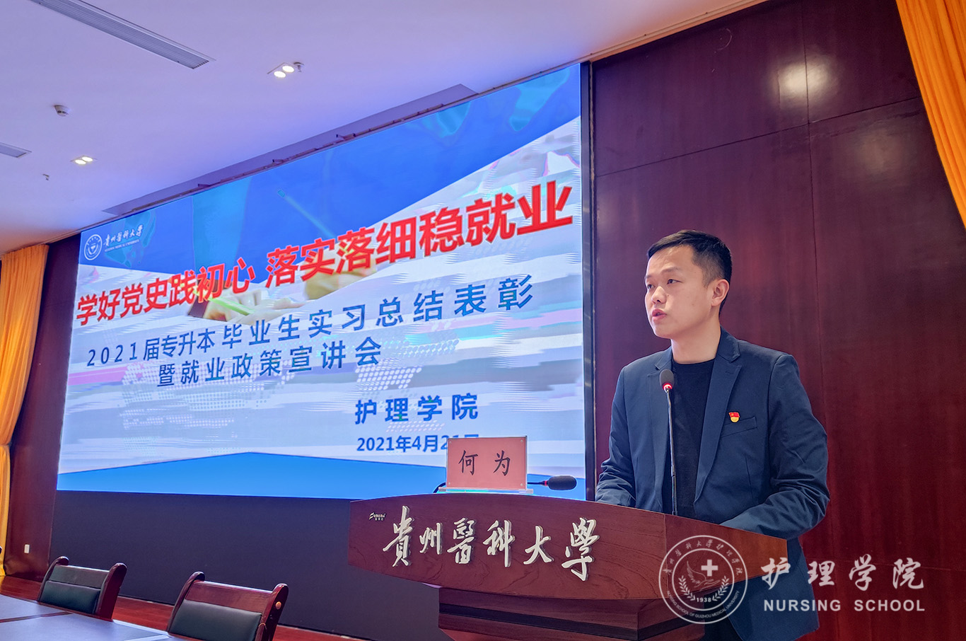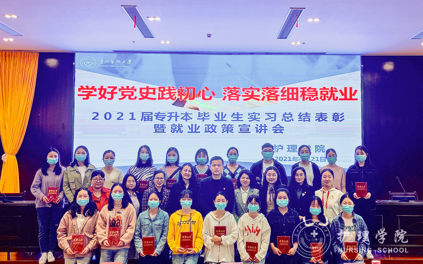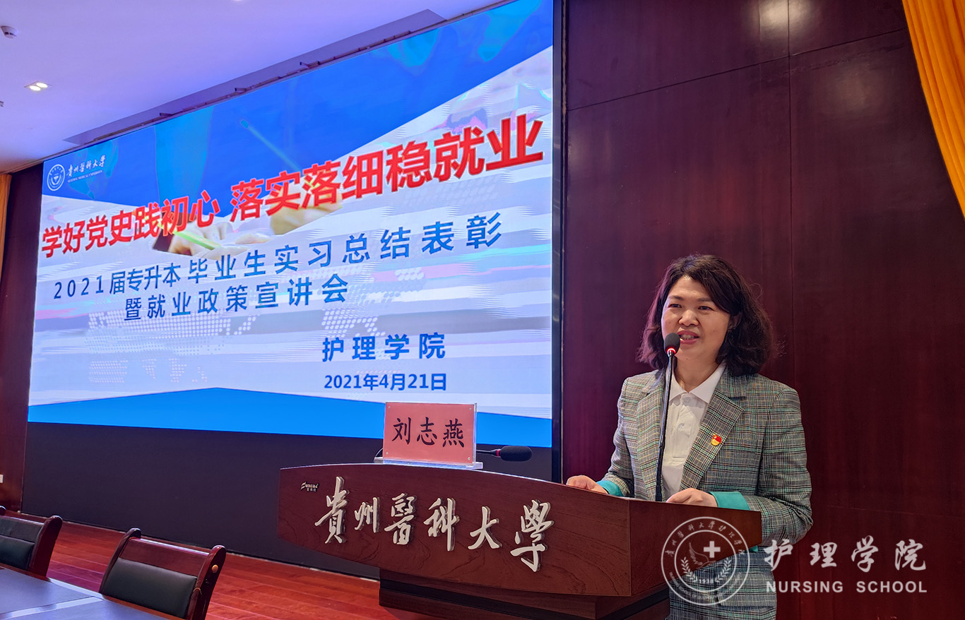 4月21日,为认真贯彻落实习近平总书记重要指示、批示精神,按照党中央、国务院决策部署,谋划和做好新发展阶段的就业工作,不断强化就业优先政策,努力实现更加充分更高质量就业,allwincity万象城官方网站在南校区道德讲堂开展“好党史践初心 落实落细稳就业”--2021届专升本毕业生实习总结表彰暨就业政策宣讲会。allwincity万象城官方网站党委副书记何为,党委委员、副院长刘志燕,正科级组织员曾敏,生产实习科科长柳忠燕,团委副书记王晓玲,学生党支部书记杨叶卿、李杏春、刘妍以及全体2021届专升本毕业生参会,会议由学生科副科长毕丽主持。
