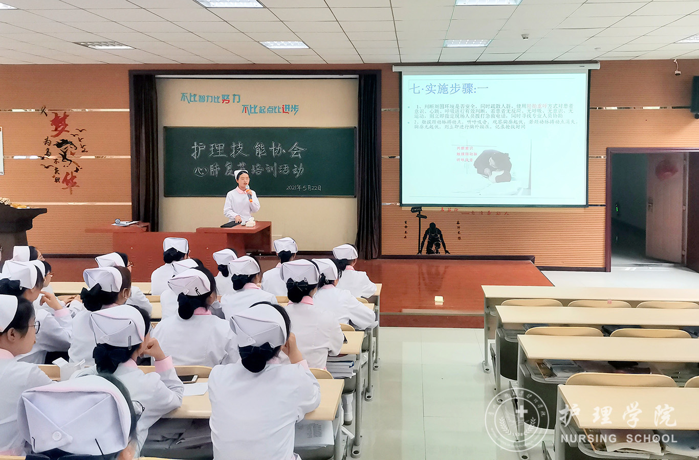 5月22日,为规范学生急救技能操作,提高应急抢救成功率,切实提高为人民群众办实事的能力,allwincity万象城官方网站护理技能协会于百川楼1101教室及模拟实验室组织开展了心肺脑复苏术培训,本次培训邀请到了在第十届中国大学生医学技术技能大赛中荣获团体二等奖的2017级护理丙班欧阳成晶与2017级护理乙班黄虹久进行指导,护理技能协会成员及各班代表参加培训。