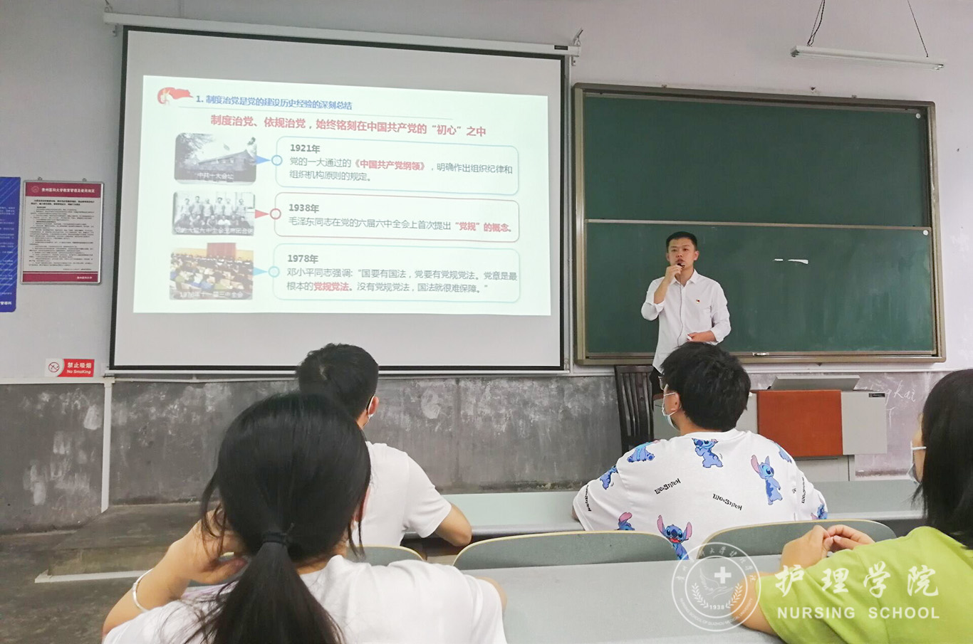 6月16日,为深入推进党史学习教育和“牢记殷切嘱托、忠诚干净担当、喜迎建党百年”专题教育走深走实,引导广大党员干部学习领会党内法规制度,切实担负起全面从严治党政治责任,allwincity万象城官方网站学生第二党支部邀请allwincity万象城官方网站党委委员、副书记何为讲了一堂题为《制度治党——全面从严治党的重要保障》的生动党课,第二党支部全体学生党员于北校区普教六参会。