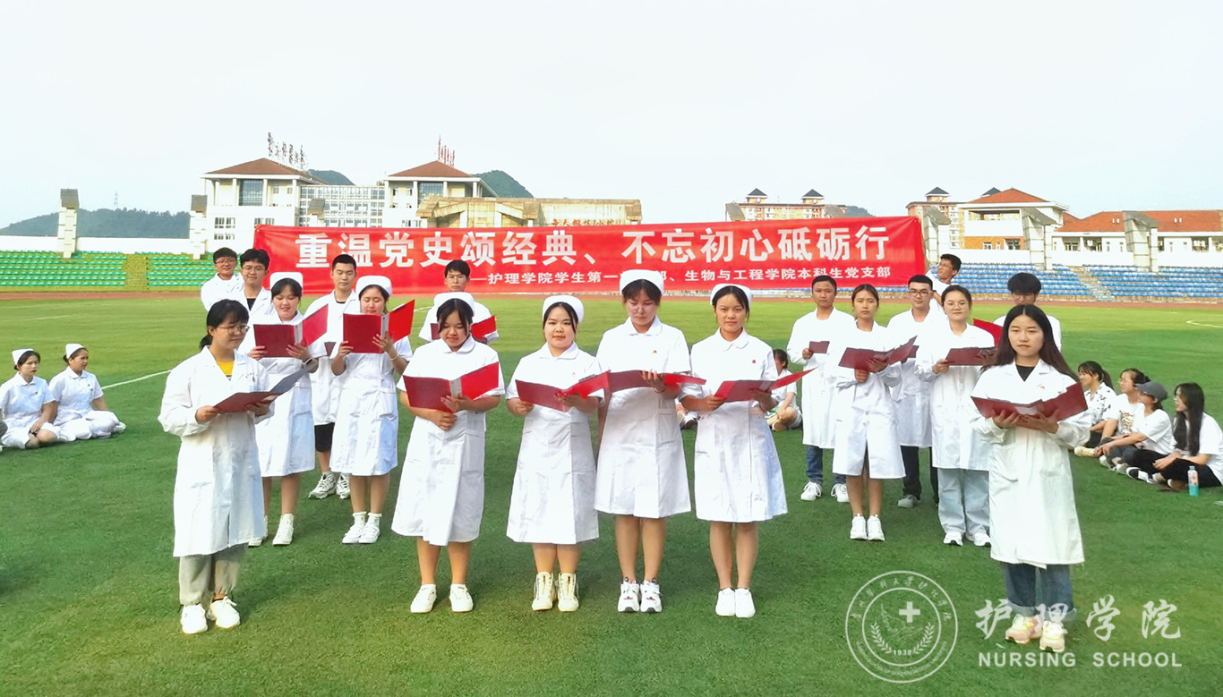 活动最后,为重温入党誓词,领悟共产党人的初心和使命,全体学生党员面对庄严的党旗,由杨叶卿领誓,带领学生党员们重温入党誓词。誓言洪亮,心中的信念愈加坚定。