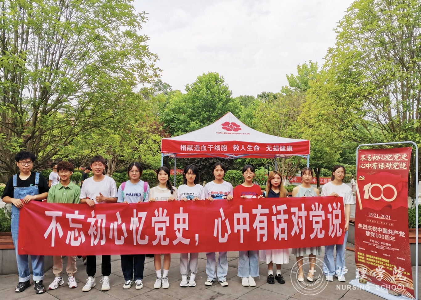6月29日,在建党百年来临之际,为颂扬中国共产党的丰功伟绩,讴歌红色人物,引导广大学生了解党史,感悟中国共产党百年光辉历程,缅怀革命先烈,激发学生爱党、爱祖国、爱社会主义的社会责任感和使命感。万象城官网于南校区二食堂小广场开展了“不忘初心忆党史、心中有话对党说”主题团日活动。2019级-2020级团员参加了此次活动。