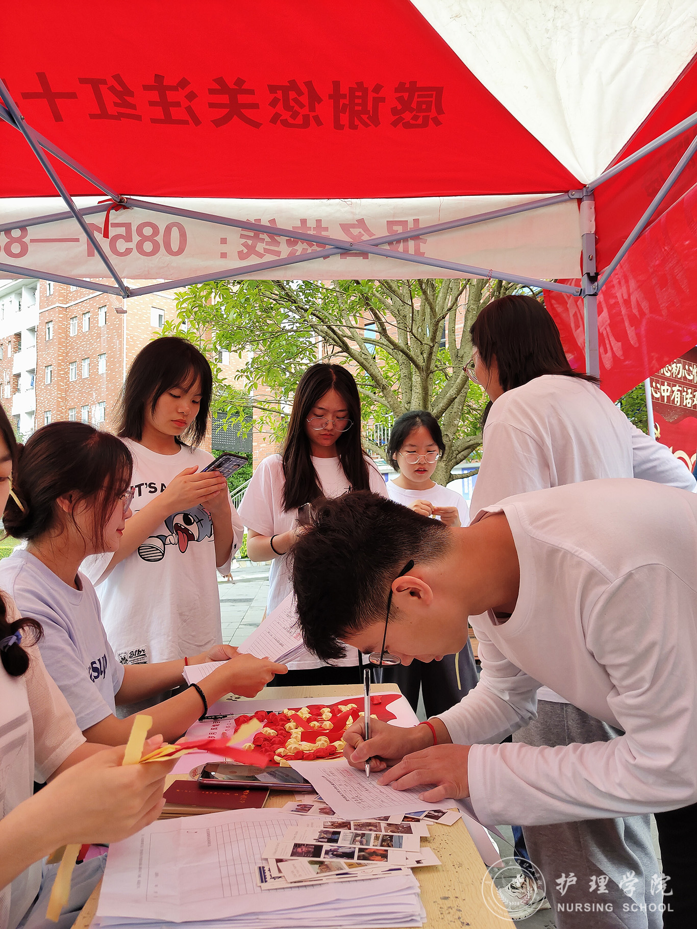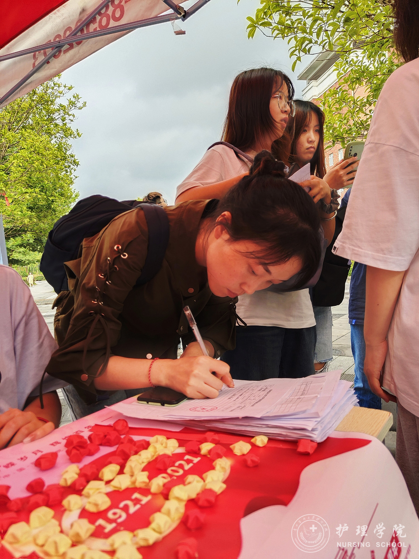 活动过程中,同学们在现场将心中想对党说的话写在纸条上,通过将纸条折星星的形式,把星星粘贴在建党百年海报上。此种新颖的活动形式,激发了学生们的积极性与创造性,展现了当代大学生积极向上的精神风貌,让同学们与党心连心。参与同学络绎不绝,近300多名同学参加了此次活动。