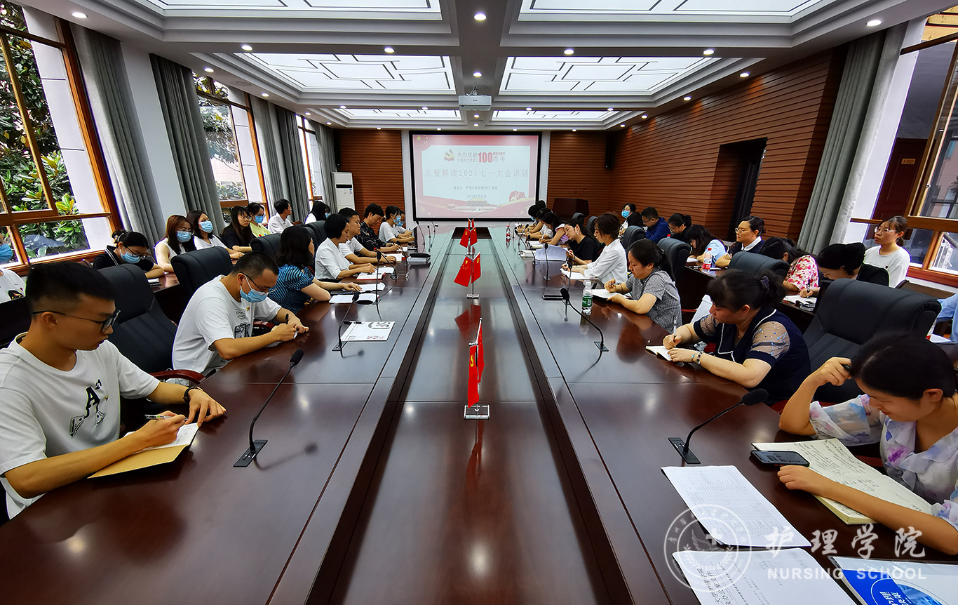 7月29日,allwincity万象城官方网站学习贯彻习近平总书记“七一”重要讲话精神专题宣讲会在北校区法医司法鉴定中心会议室召开。学院党委书记杨英作专题宣讲,学院领导班子成员、副科级以上干部、党支部书记、师生党员代表参加学习。