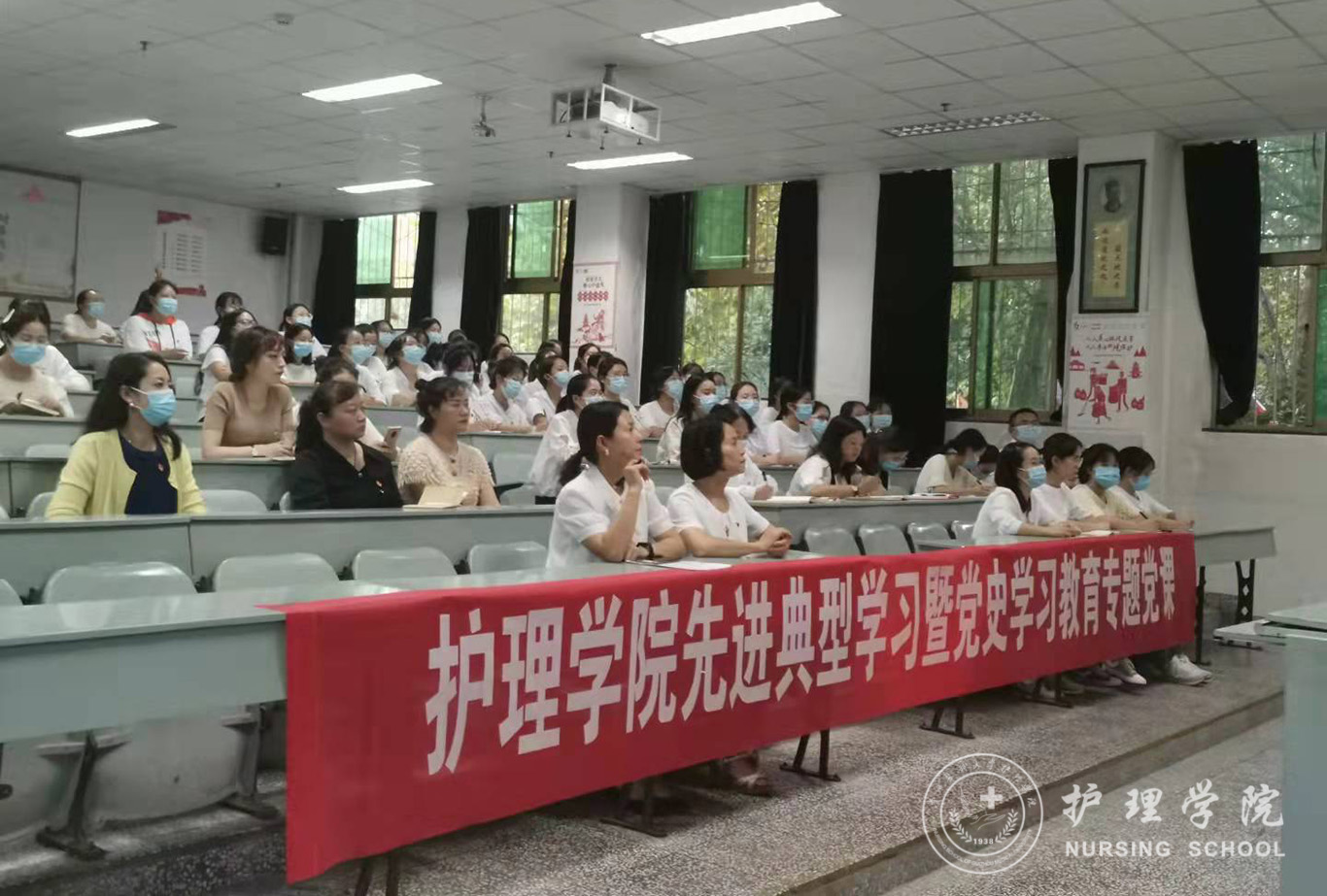 9月16日,为深入开展党史学习教育,贯彻落实习近平总书记“七一”重要讲话精神,allwincity万象城官方网站通过线上线下相结合的方式开展了抗疫先进典型学习暨党史学习教育专题党课,allwincity万象城官方网站党委委员、院长李亚玲为allwincity万象城官方网站全体党员讲授了一堂题为《学党史,悟精神,感党恩,战疫情》的党课,allwincity万象城官方网站全体师生党员聆听了专题党课。本次活动由allwincity万象城官方网站正科级组织员曾敏主持。