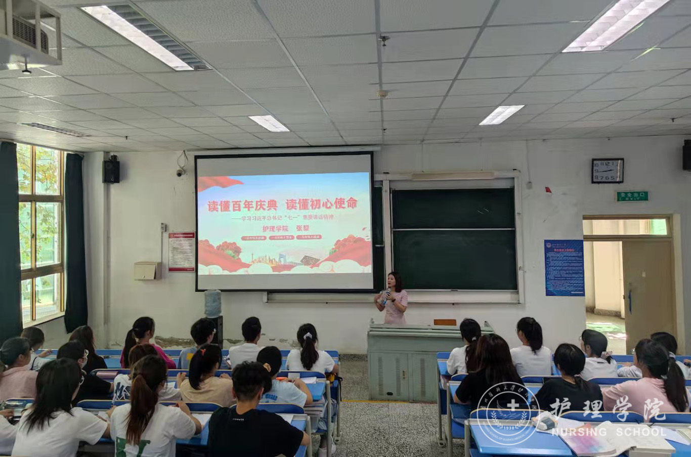 9月30日,为深入开展党史学习教育,贯彻落实习近平总书记“七一”重要讲话精神,allwincity万象城官方网站党委委员、副处级组织员张黎以《读懂百年庆典,读懂初心使命》为题,在北校区3301教室为学院学生第一党支部党员及入党积极分子讲授了专题党课。