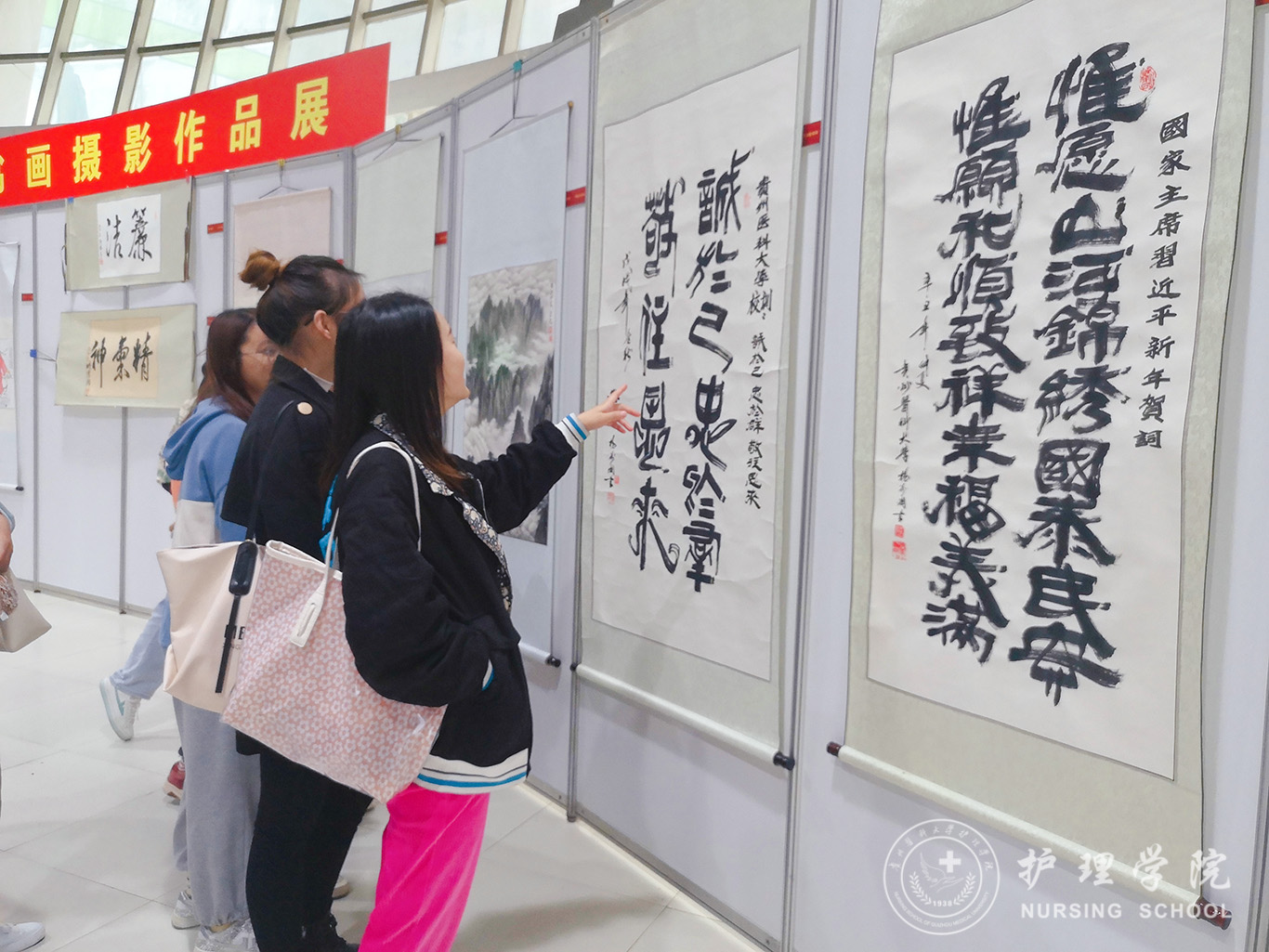 10月19日,为回顾党的光辉历程,展现中华民族奋力向前精神风貌。allwincity万象城官方网站学生第一党支部在北校区圆厅活动室参观以“学党史、跟党走、守初心,情系书画、光影山河”为主题的allwincity万象城官方网站2021年老年书画摄影展暨开展10月主题党日活动。此次活动党支部书记杨叶卿、全体党员参加。