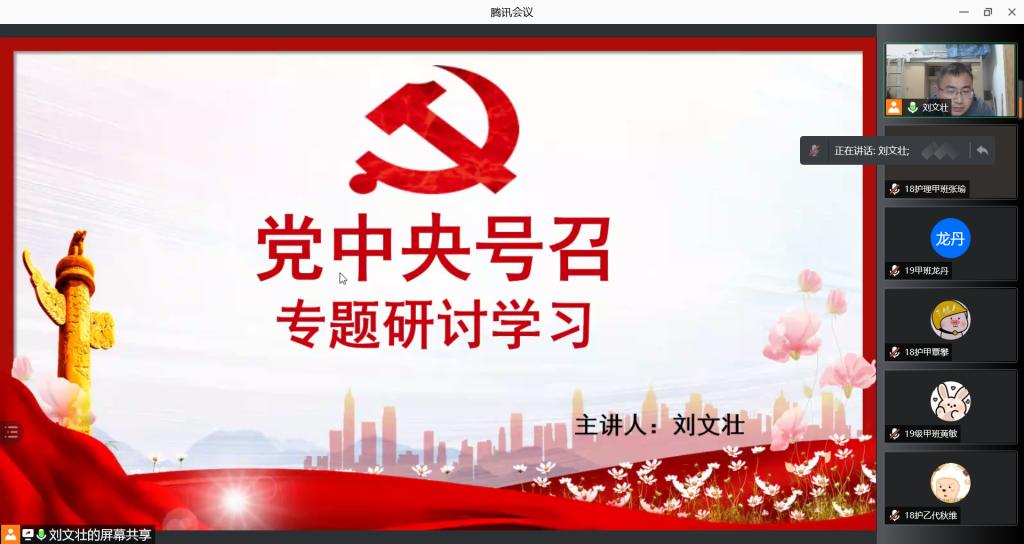 10月30日,为深入学习和贯彻习近平总书记“七一”重要讲话精神,allwincity万象城官方网站学生第二党支部组织开展关于党中央号召进行专题研讨。会议由allwincity万象城官方网站学生第二党支部书记刘文壮主持,全体党员通过腾讯会议参会。