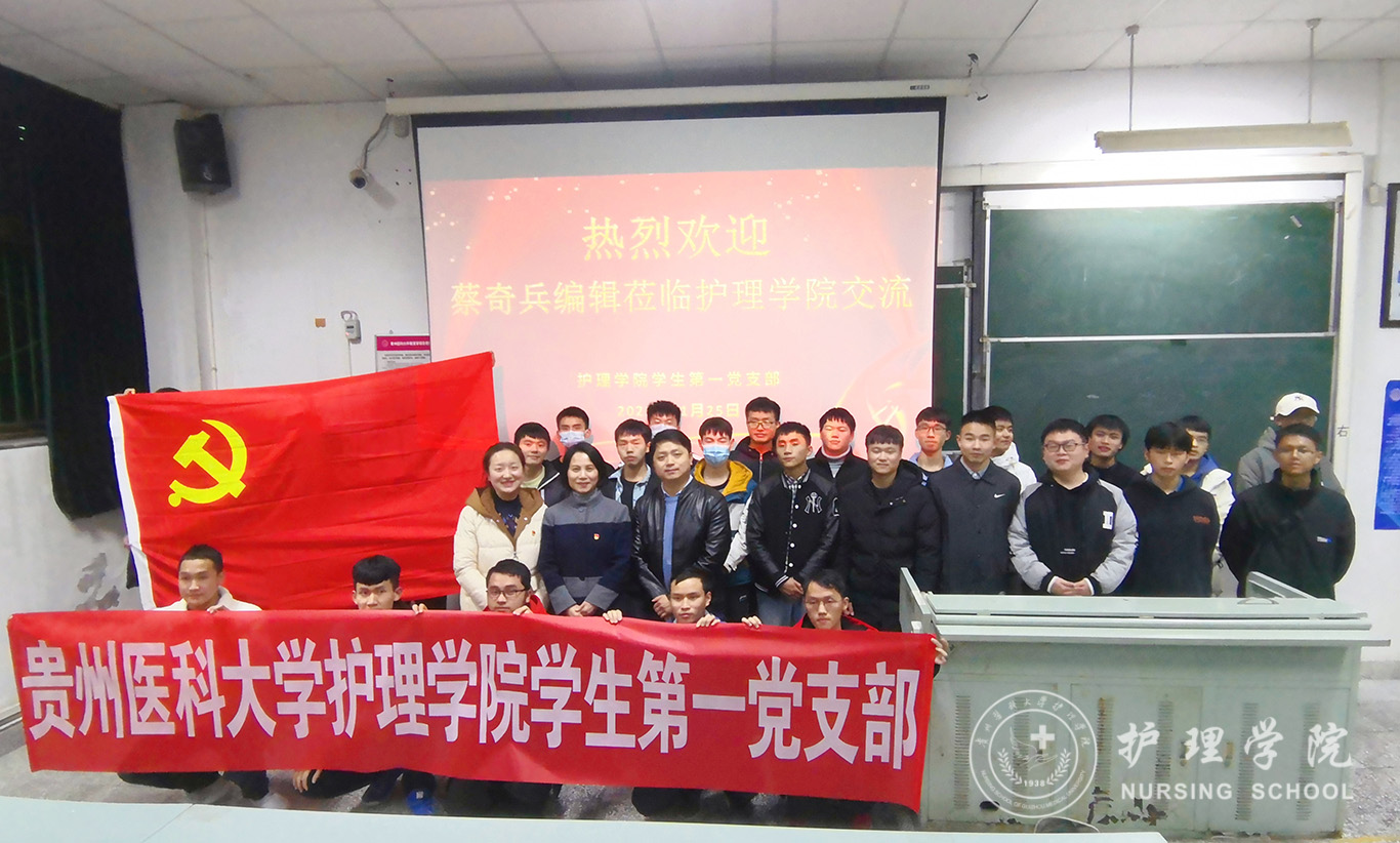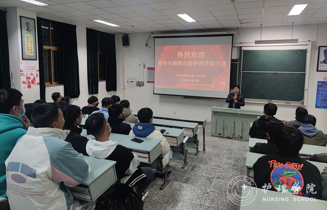 11月25日,为深刻贯彻落实“我为群众办实事”,进一步推动党史学习教育在实践中发挥成效。allwincity万象城官方网站学生第一党支部特别邀请《护士进修杂志》编辑蔡奇兵为万象城官网全体在校男护生作交流,即在专业思想引领、实习及就业指导等方面释疑解惑。学院党委书记杨英莅临指导,全体在校男护生线上线下参会。会议由学生第一党支部书记杨叶卿主持。