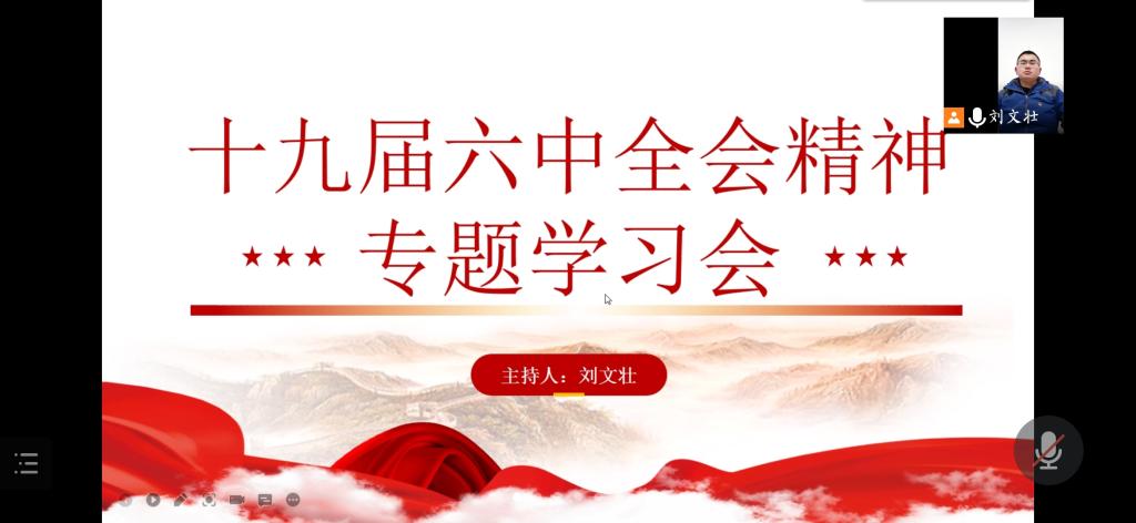 11月23日,为深入学习和贯彻党的十九届六中全会精神,allwincity万象城官方网站学生第二党支部组织开展党的十九届六中全会精神专题学习会。会议由allwincity万象城官方网站学生第二党支部书记刘文壮主持,全体党员通过腾讯会议参会。