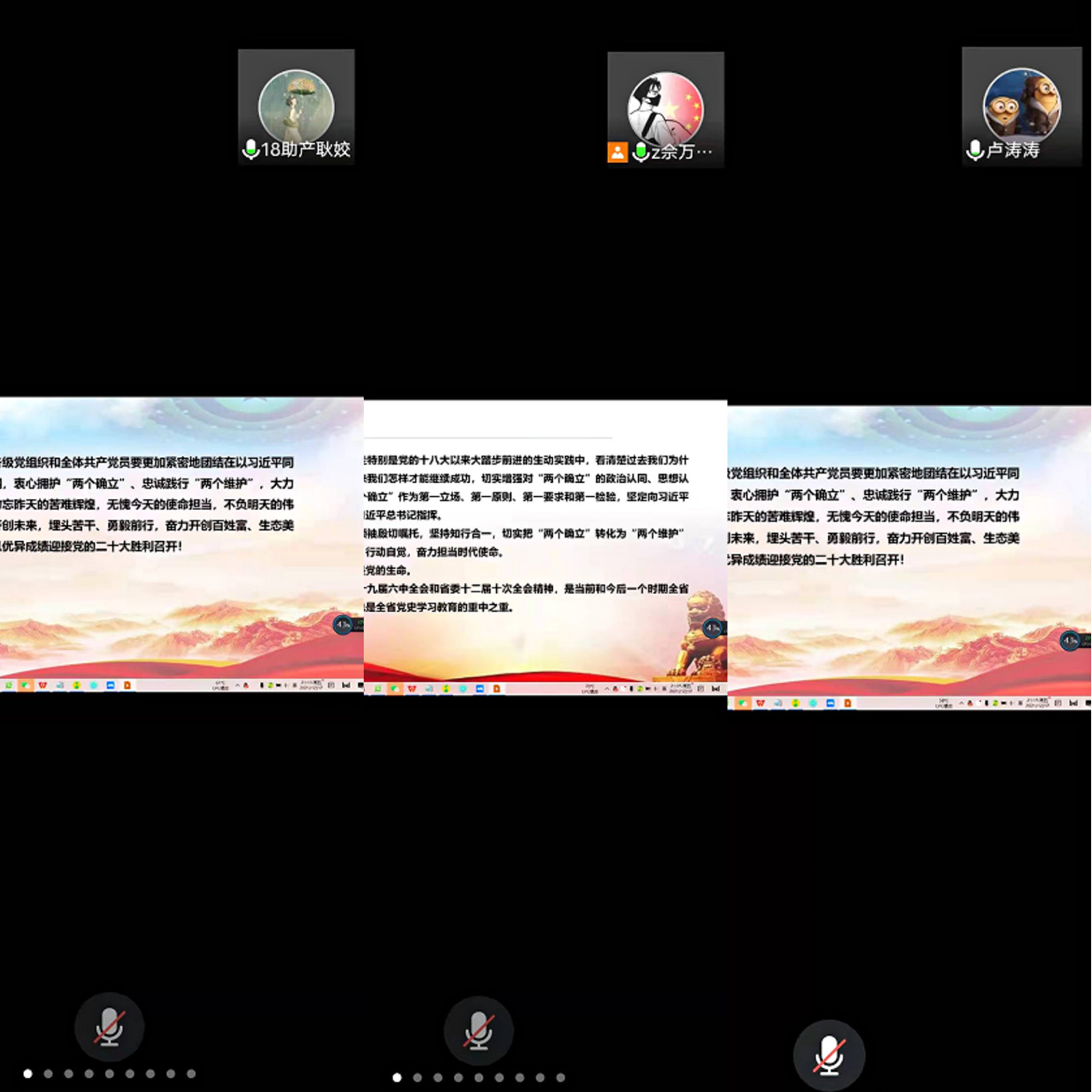 最后,支部党员卢涛涛,耿姣,佘万能三位同志分别进行交流发言。其余党员也纷纷表示要更加紧密地团结在以习近平同志为核心的党中央周围,衷心拥护“两个确立”、忠诚践行“两个维护”,大力弘扬伟大建党精神,勿忘昨天的苦难辉煌,无愧今天的使命担当,不负明天的伟大梦想,以史为鉴、开创未来,埋头苦干、勇毅前行。