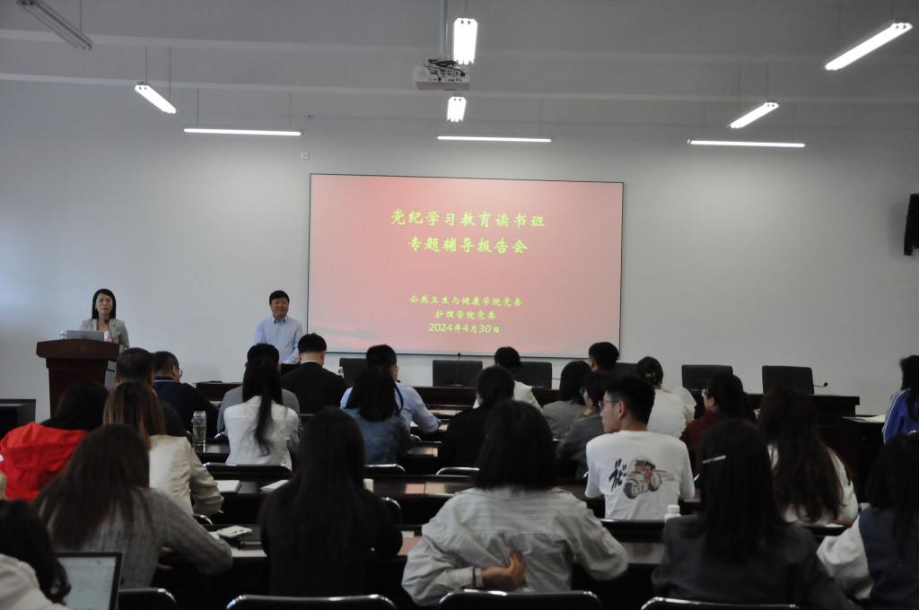 4月30日上午,allwincity万象城官方网站在博雅楼C3-2-11举行党纪学习教育读书班专题辅导报告会。学院党委领导班子成员、副科级以上干部、各党支部书记及全体辅导员参加学习。