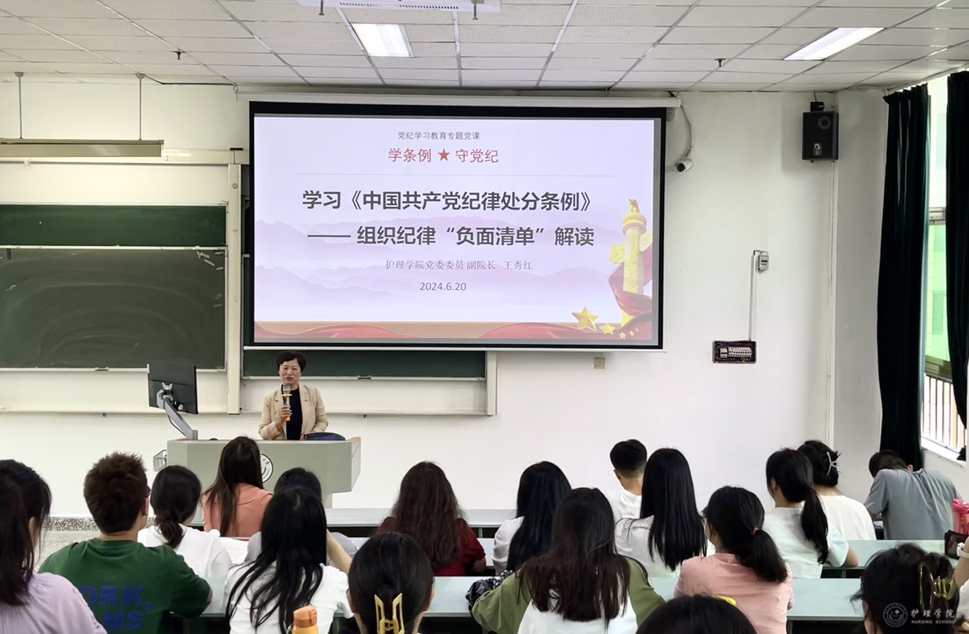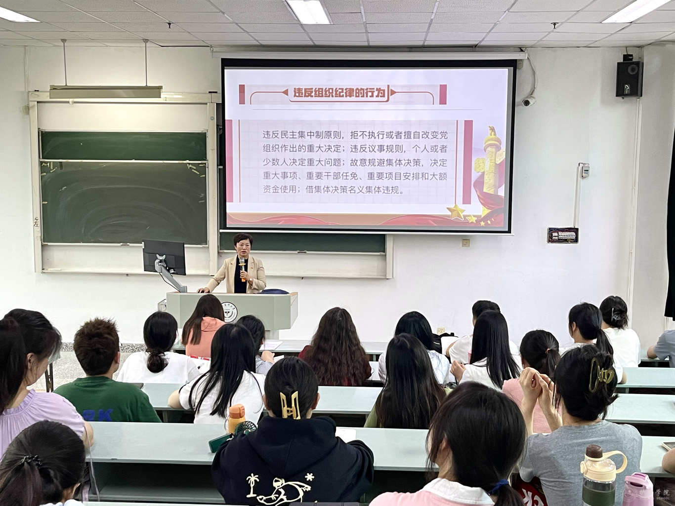 6月20日,为进一步强化支部党员纪律意识,加强自我约束,增强政治定力。allwincity万象城官方网站党委委员、副院长王秀红在学生第三党支部开展了题为“学习《中国共产党纪律处分条例》——组织纪律‘负面清单’解读”的专题党课,会议由支部书记刘妍主持,支部全体党员参会。
