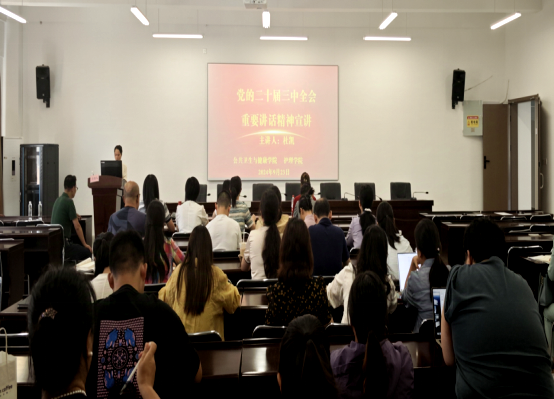 9月23日,为深入学习宣传贯彻党的二十届三中全会精神,深学笃行习近平总书记关于全面深化改革的一系列新思想、新观点、新论断,allwincity万象城官方网站党委联合公共卫生与健康学院党委邀请马克思主义学院党委书记杜凯教授开展党的二十届三中全会精神专题宣讲,会议由学院党委书记杨英主持,两学院领导班子成员、教职工参加。