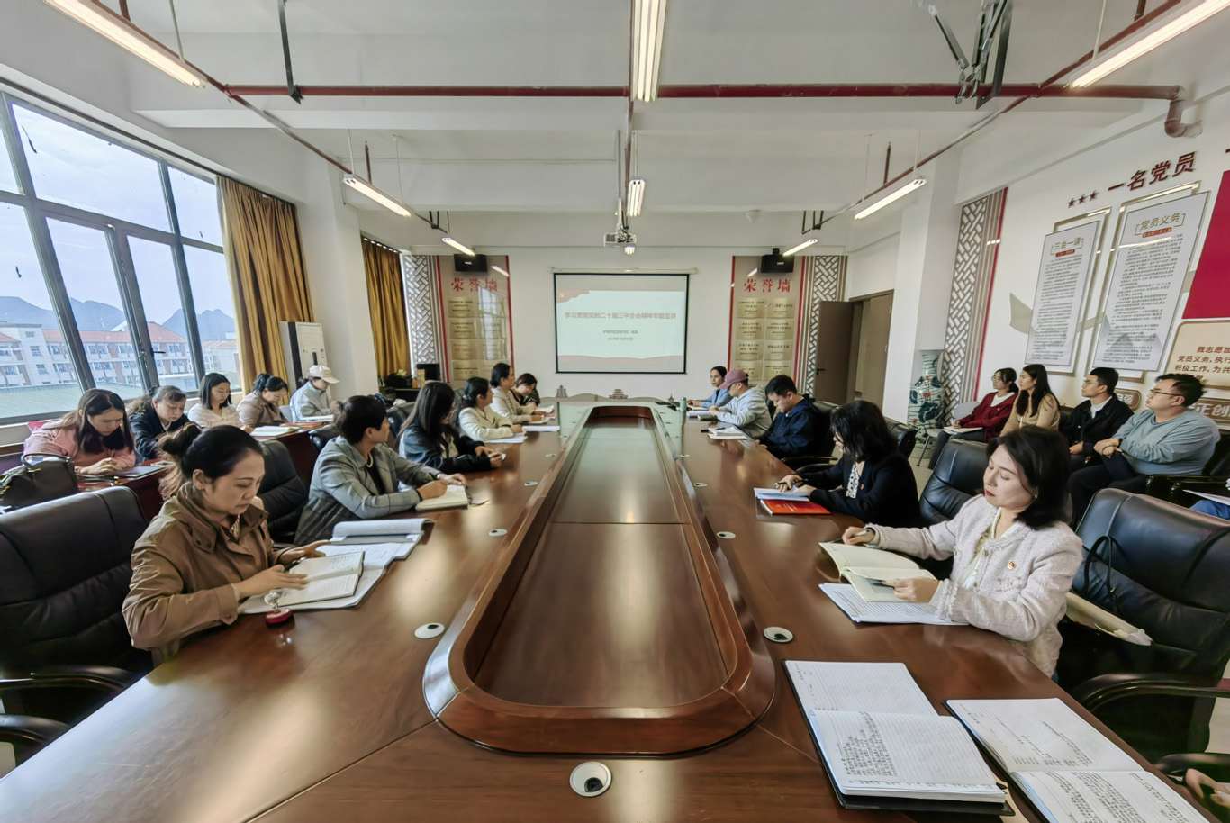 10月15日,为深入学习贯彻党的二十届三中全会精神,引导教职工把思想和行动统一到全会精神上来,以高度的政治自觉和行动自觉将党中央部署转化为推动学院高质量发展的强大力量,allwincity万象城官方网站党委书记杨英在云漫湖校区酬勤楼六楼会议室为全院教职工宣讲了党的二十届三中全会精神。