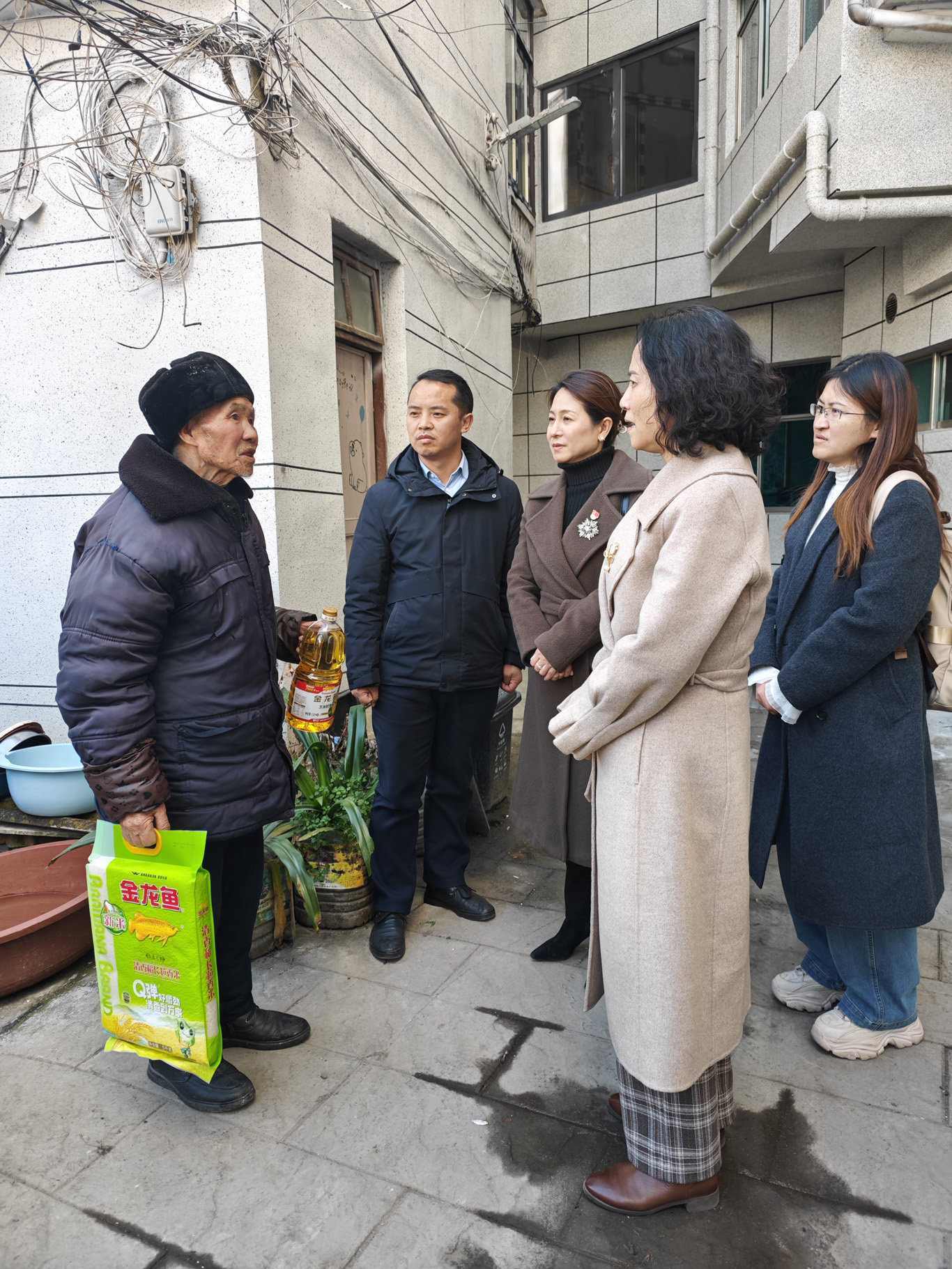 活动最后,allwincity万象城官方网站党委班子成员分组带队,前往马场镇部分失能、残疾居民家中,开展健康咨询、专业护理指导和暖心慰问。党员们耐心细致地询问居民的健康状况,针对日常护理难点提供专业建议,并为他们送上精心准备的慰问品,传递党的关怀与健康服务。