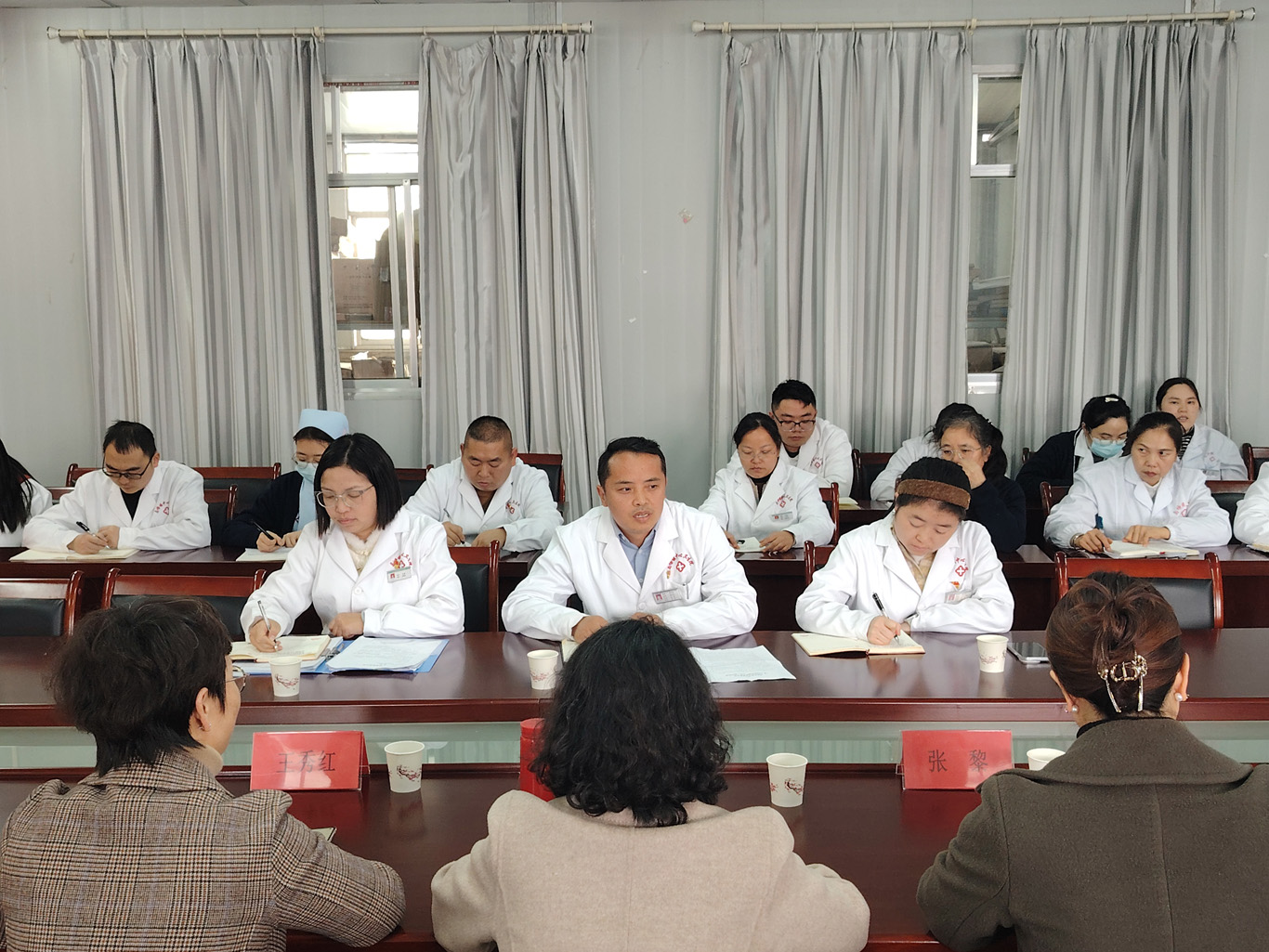 理论学习环节,双方学习了《习近平总书记在党外人士座谈会上的重要讲话精神》《扩大内需是战略之举》相关文章。理论宣讲环节,allwincity万象城官方网站党委委员、院长王秀红以“深刻领会党的二十届四中全会和中共贵州省委十三届八次全会,服务人民健康需求”为题,为全体党员开展理论宣讲。宣讲紧密结合基层医疗卫生工作实际,重点强调党建引领在强化基层医疗机构服务能力、保障人民群众身体健康和生命安全中的根本性作用。交流研讨环节,双方围绕党建工作经验、医疗护理技能提升、人才合作培养、科技赋能等议题进行深入交流,进一步明确未来合作的重点领域与实施路径。